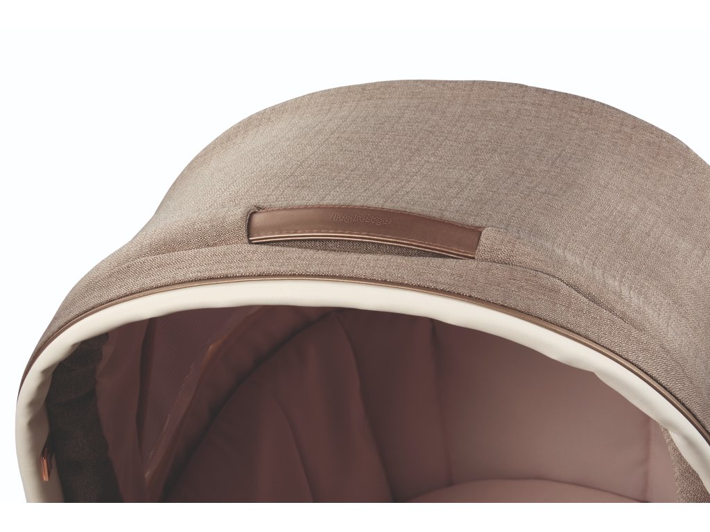 Elegantní madlo na přenášení z eko kůže je patentem Peg Perego. Stříšku můžete spustit jednou rukou, i když držíte své dítě.