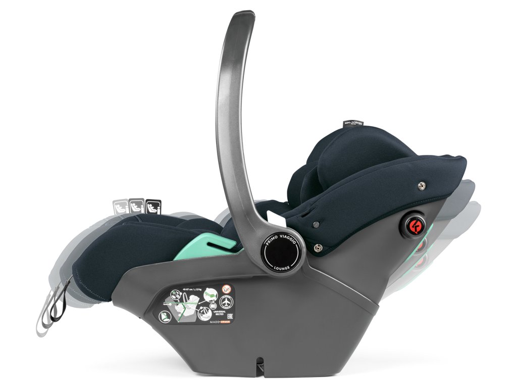 Primo Viaggio Lounge je polohovací autosedačka pro novorozence. Autosedačka je určena pro děti od 40 do 87 cm. Díky funkci Comfort Recline lze opěrku zad sklopit a nožní opěrku vysunout, což umožňuje vašemu dítěti díky základně i-Size (samostatně k dokoupení jako příslušenství) také ležet v nejergonomičtější poloze v autě.