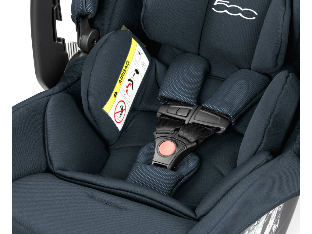 3-bodový pás s měkkými ramenními vycpávkami. Ergonomická sedací plocha s anatomickým polštářem pro novorozence. Zádová opěrka je více sklopná než u autosedačky Primo Viaggio SL.