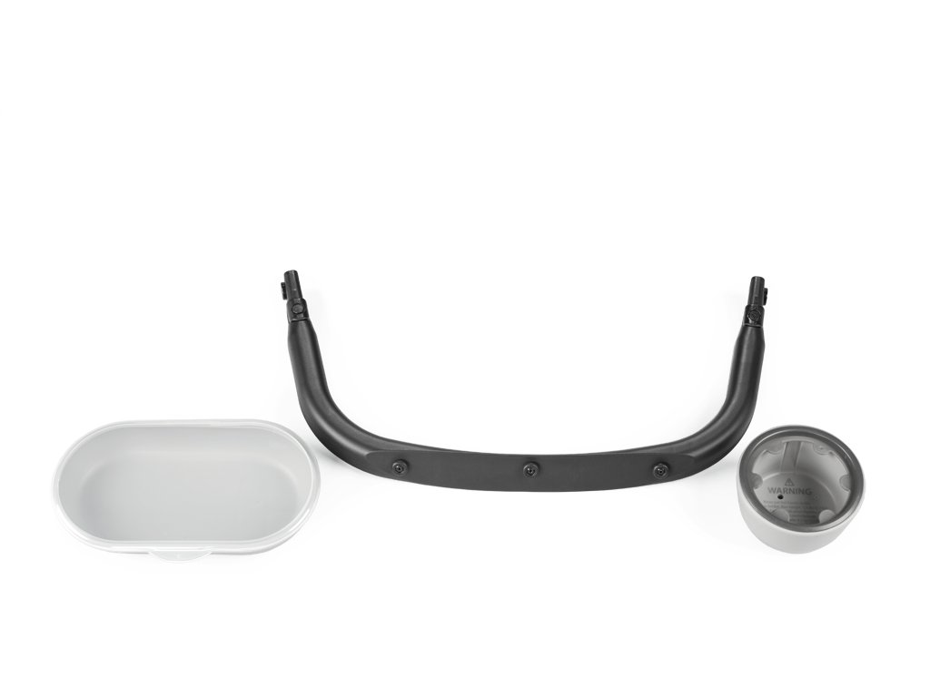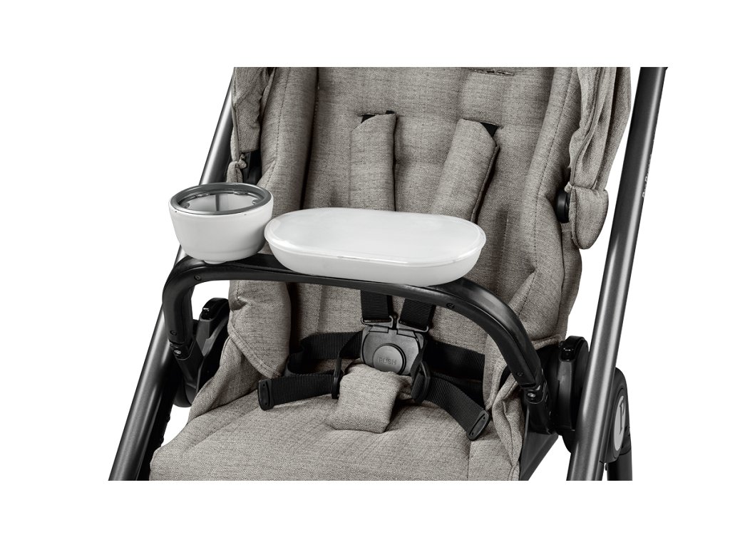 Snadno odnímatelný přední pult s držákem na pohár, vaše dítě má vše po ruce. Držák na láhve a nádoba na potraviny jsou vhodné do myčky nádobí.