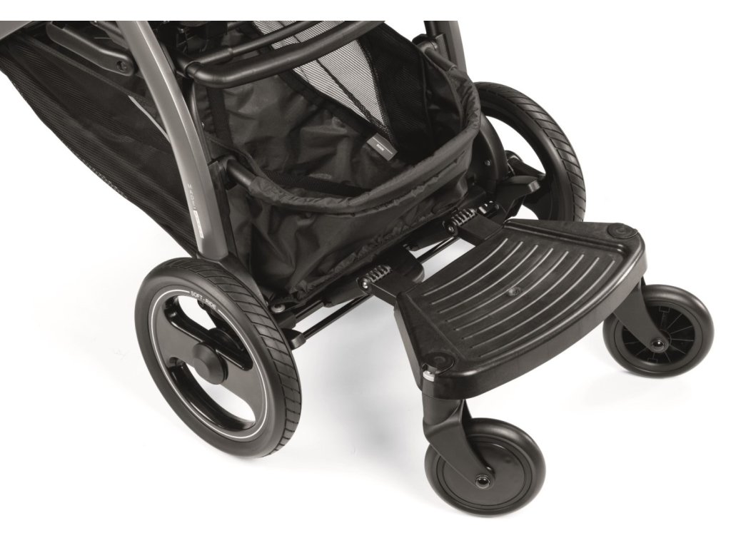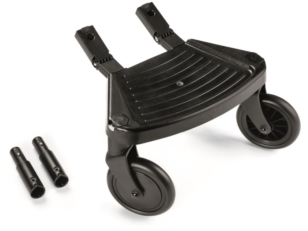 Stupátko Book se hodí na kočárek nebo podvozek a umožňuje převážet starší děti (maximálně 22 kg) na zábavné výlety bez únavy pomocí dvou přiložených prodloužení řídítek.