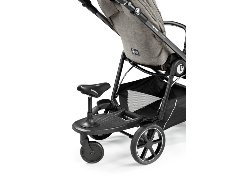 Stupátko Ride with me je opravdu užitečné! Připevněné ke kočárku nebo podvozku Peg Perego vám umožní vozit staršího sourozence při procházce. Sedadlo lze vyjmout, takže si můžete vybrat mezi cestováním vsedě nebo ve stoje. Vhodné pro přepravu od 2 let do maximální hmotnosti 22 kg.