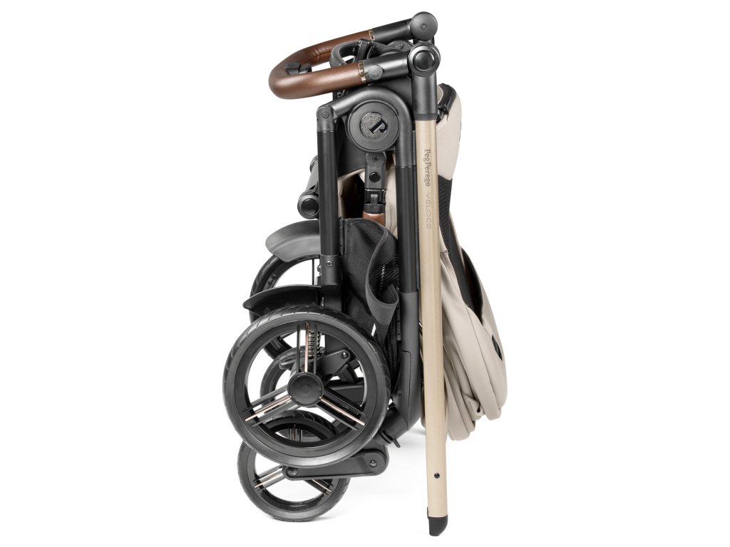 Tento praktický kočárek s váhou pouze 10,7 kg a šířkou 51 cm si snadno poradí i s těmi nejužšími průchody a výtahy, je ideální pro každodenní použití. Jeho otočná 4 - sezonní sportovní nástavba je vhodná od narození až do 22 kg váhy dítěte. Sportovní nástavbu lze v létě snadno přeměnit na prodyšnou síťovanou sedačku. Nastavitelná opěrka zad umožňuje přizpůsobení pozice dítěte dle jeho požadavků. Bezpečnost dítěte je zajištěna 5bodovým magnetickým rychloupínacím systémem pásů a odnímatelným předním madlem v eco kůži. Kočárek lze snadno skládat společně se sportovní nástavbou v obou pozicích a to vždy způsobem, který chrání potahové části. Díky důmyslnému systému se kočárek skládá pouze jednou rukou bez nutnosti se zbytečně shýbat. Ve složeném stavu stojí kočárek Veloce samostatně a pyšní se kompaktními rozměry (výška pouhých 76cm), které usnadňují skladování kočárku doma či na návštěvě. Vysoce kvalitní Soft-ride kola, tlumiče s viditelnými pružinami a kuličková ložiska na všech kolech zajišťují snadné ovládání kočárku v každém terénu. Přední otočná kola je možné kdykoliv zaaretovat.