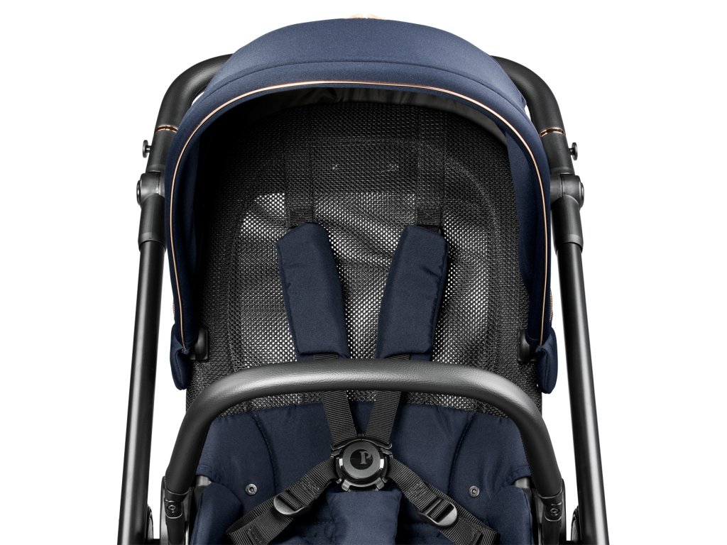 Ať už vaše dítě v kočárku zrovna odpočívá nebo objevuje okolní svět, prodlužovací XXL stříška s UPF 50+ jej ochrání před sluncem a větrem. Neméně užitečný je i na míru šitý nánožník, který poskytuje ochranu dítěte i v případě sklopené opěrky zad.