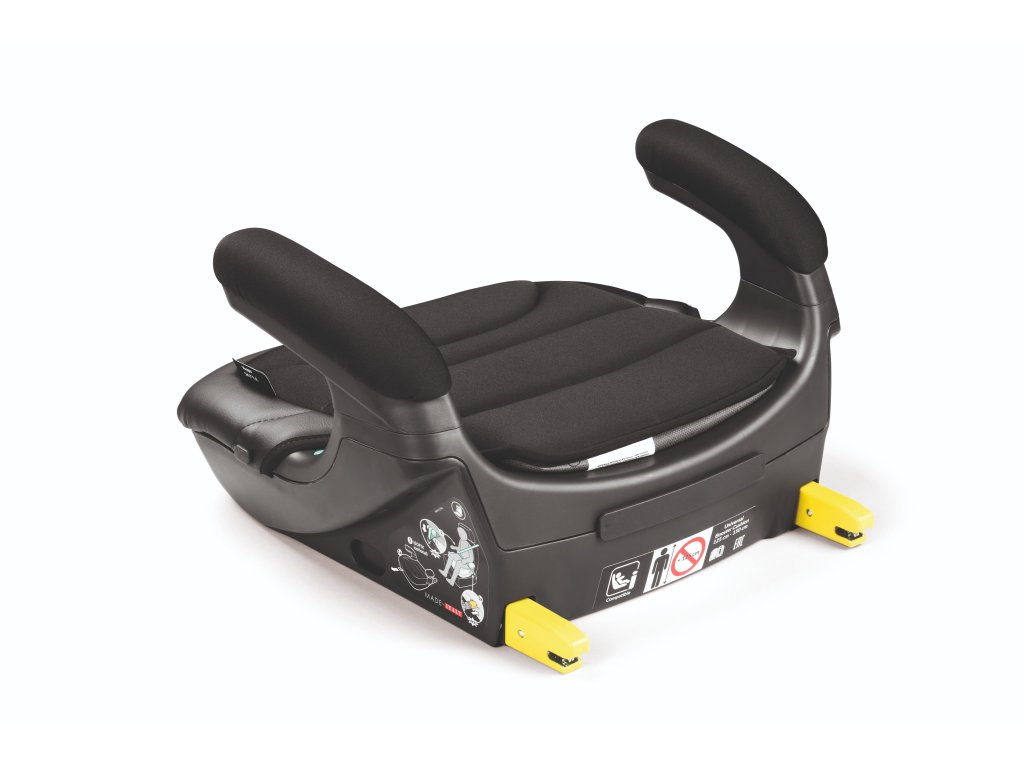 2) díky integrované i-Size Base lze společně s 3bodovým bezpečnostním pásem použít také ISOFIX konektory a připojit tak podsedák přímo ke kotevním bodům ve vozidle. Podsedák je tak vždy správně nainstalovaný a dokonale drží i v prudkých zatáčkách.