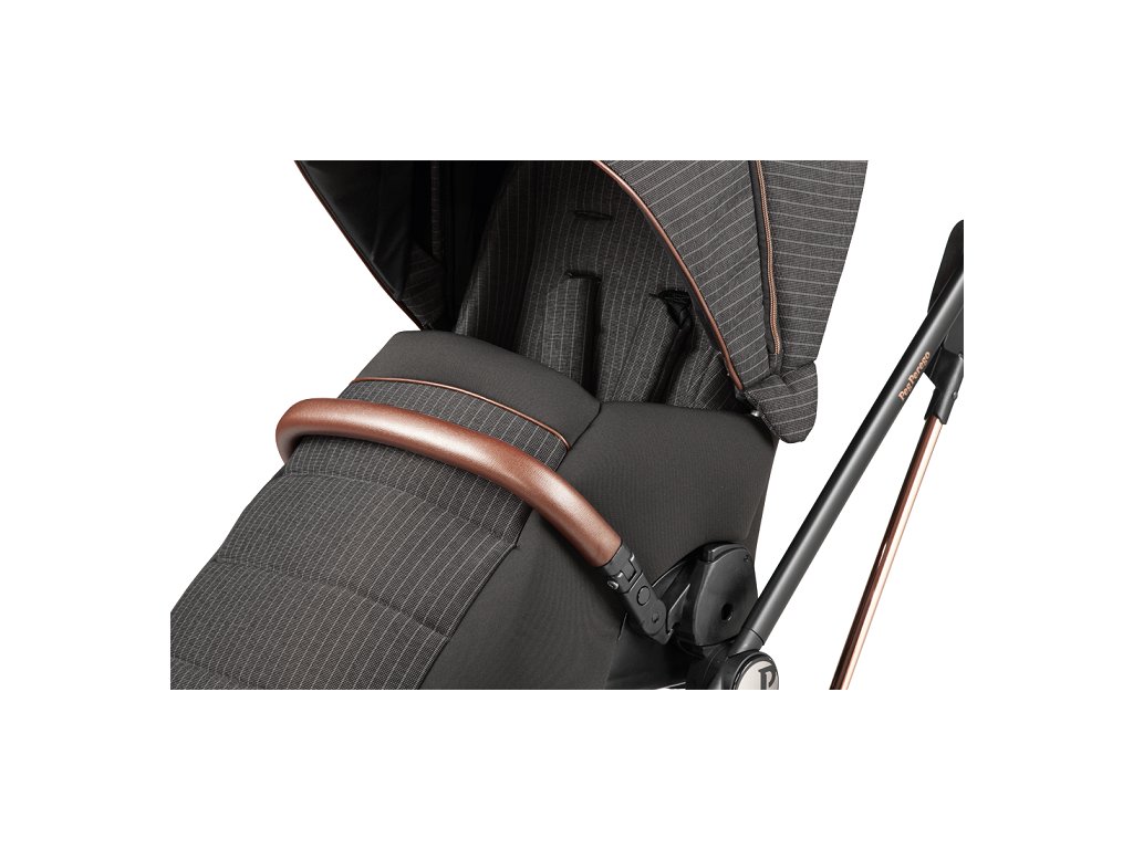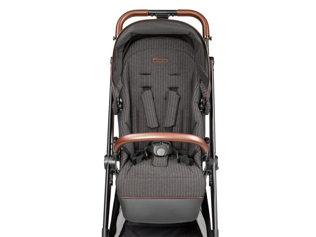 Pohodlí a funkčnost zaručuje prostorné sedadlo, 5bodový bezpečnostní pás a přední madlo z ekologické kůže, které se snadno otevírá a zavírá.