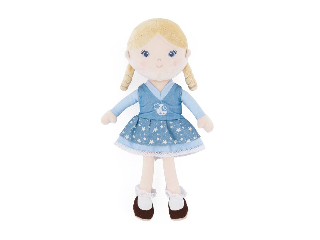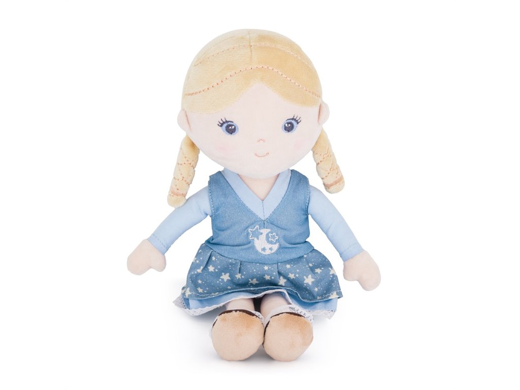 Bábika je vyrobená z veľmi príjemného materiálu s krásnymi šatami, dokonale upravenými zlatými vrkočmi. Ak sa zašpiní, môžete ju jednoducho ručne vyprať pri teplote 30°. Vďaka rôznym tvarom a textúram podporuje u detí predstavivosť a fantáziu a rozvíja poznávacie schopnosti.