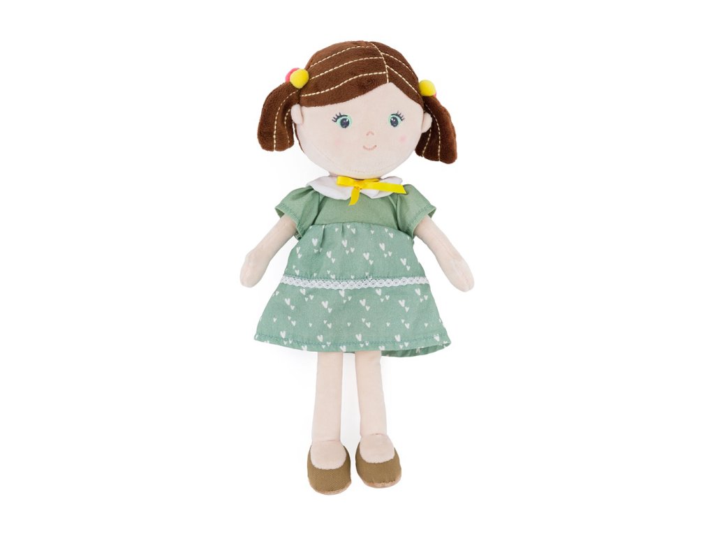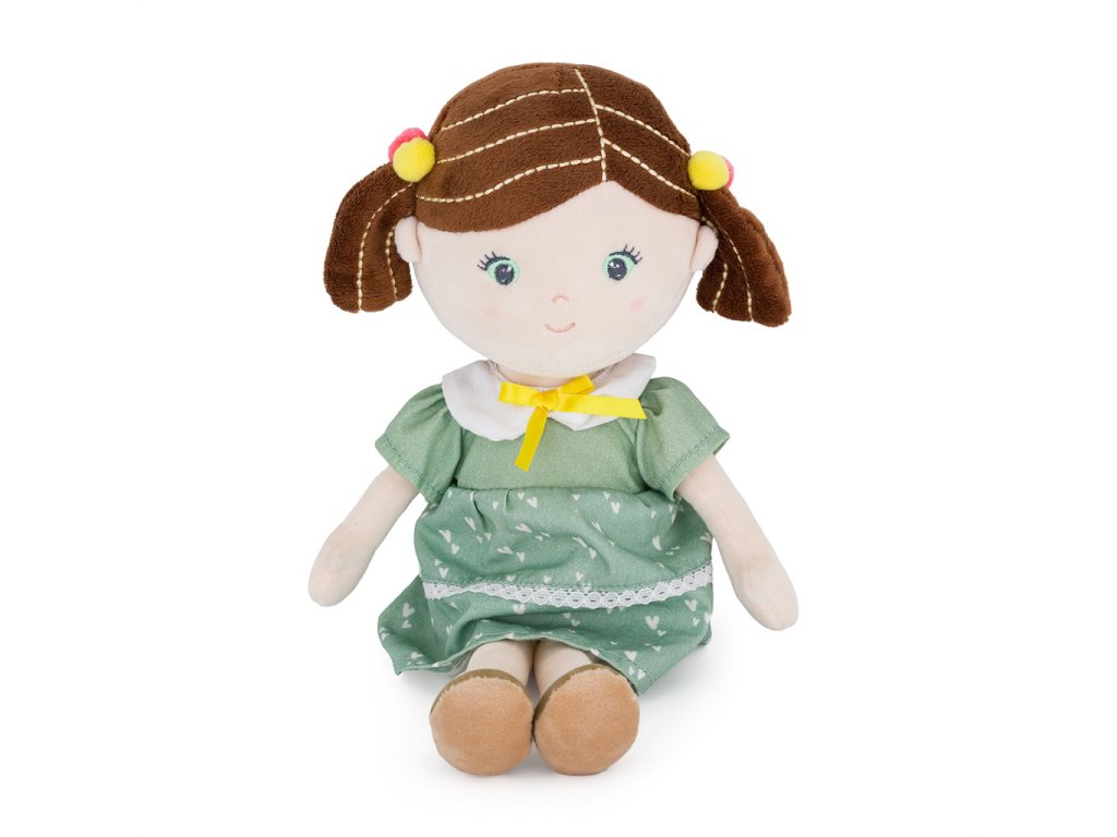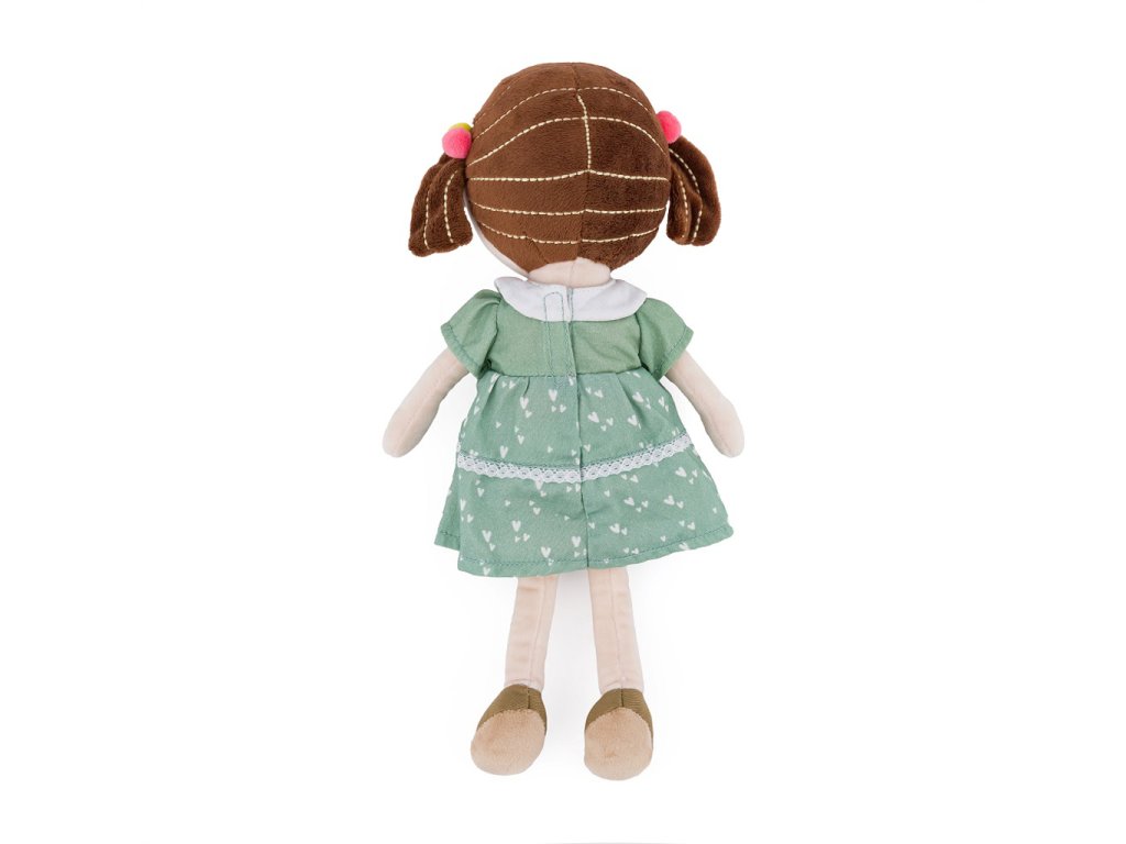 Bábika je vyrobená z veľmi príjemného materiálu s krásnymi šatami, vlasmi dokonale upravenými do hnedých copíkov. Ak sa zašpiní, môžete ju jednoducho ručne vyprať pri teplote 30°. Vďaka rôznym tvarom a textúram podporuje u detí predstavivosť a fantáziu a rozvíja poznávacie schopnosti.