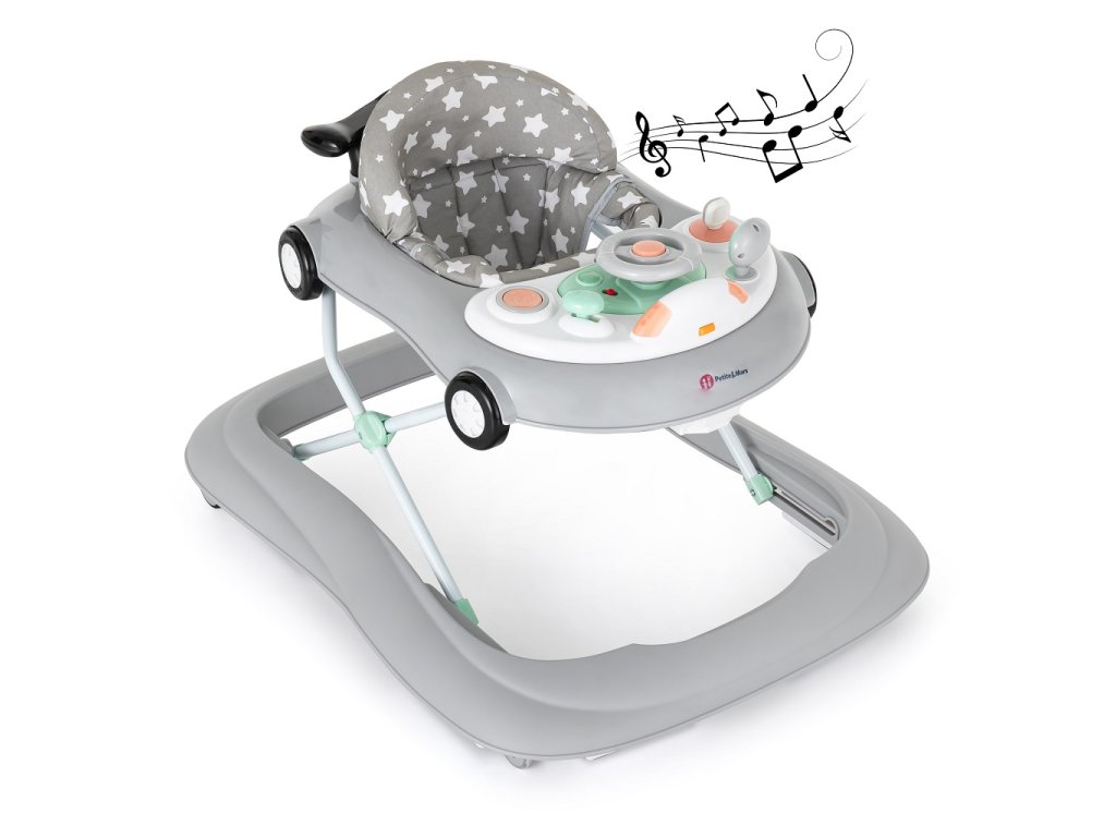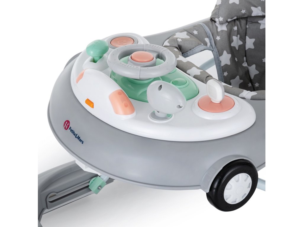 Chodítko Petite&Mars Cabrio pomôže Vášmu dieťatku, ktoré sa učí chodiť a objavuje svet, s udržaním stability a bezpečnou orientáciou v priestore. Súčasťou chodítka je hudobný panel, ktorý rozvíja sluchové, hmatové a motorické zručnosti dieťaťa, prebúdza jeho fantáziu a zmyslové vnímanie.