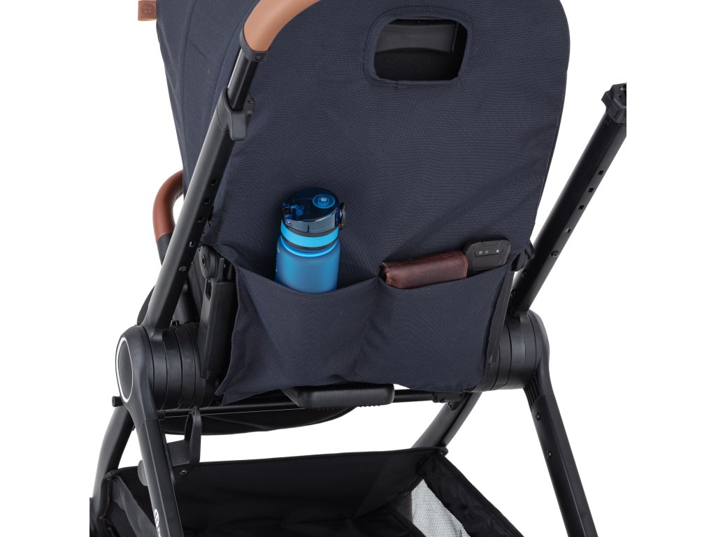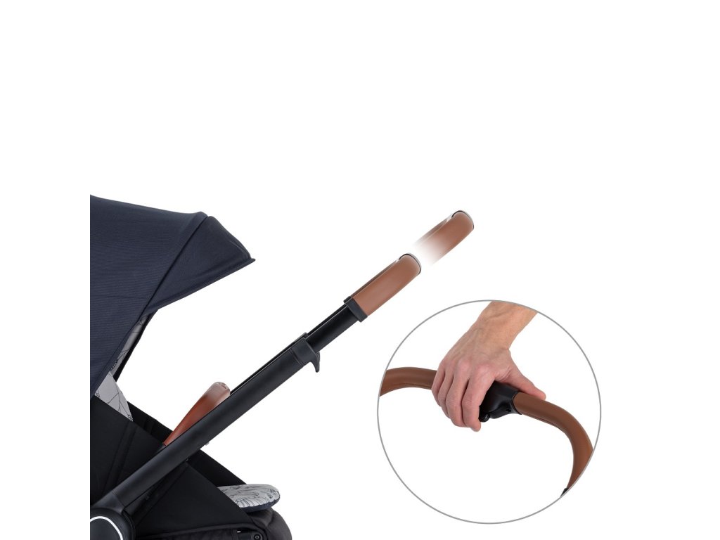 Športová časť je otočná v smere aj v protismere jazdy a je možné ju sklopiť do takmer úplného ľahu. Polohovateľná je aj opierka na nožičky a veľmi ľahko sa čistí. Strieška je predĺžiteľná s odvetraním a kontrolným okienkom. Dostatočne široká športová sedačka zabezpečí Vášmu dieťatku komfort a 5-bodový pás jeho bezpečnosť. Otočné madlo je potiahnuté eko-kožou a je odnímateľné. V zadnej časti chrbtovej opierky nájdete vrecko na drobnosti. Priestranný nákupný košík má nosnosť 3 kg.