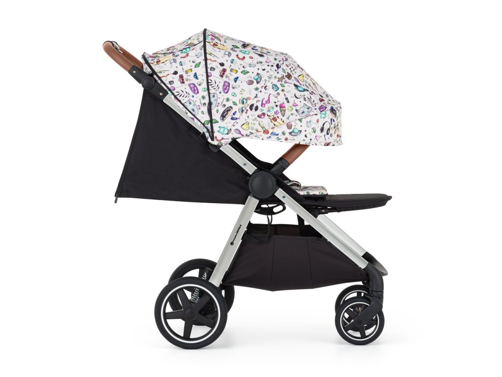 • Konštrukciu kočíka v striebornej farbe s madlom a rukoväťou v hnedej eko-koži
