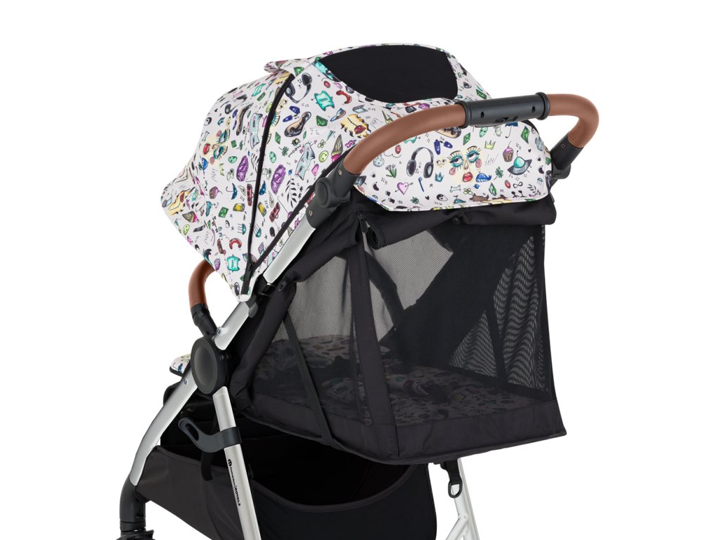 Dieťatko ocení pohodlie a dostatočný priestor a vďaka vylepšenej sieťovanej opierke chrbta a extra dlhej strieške si vychutná komfortný spánok aj počas horúceho leta. Maminke pri usádzaní dieťatka pomôže otočné madlo a nová magnetická pracka.
