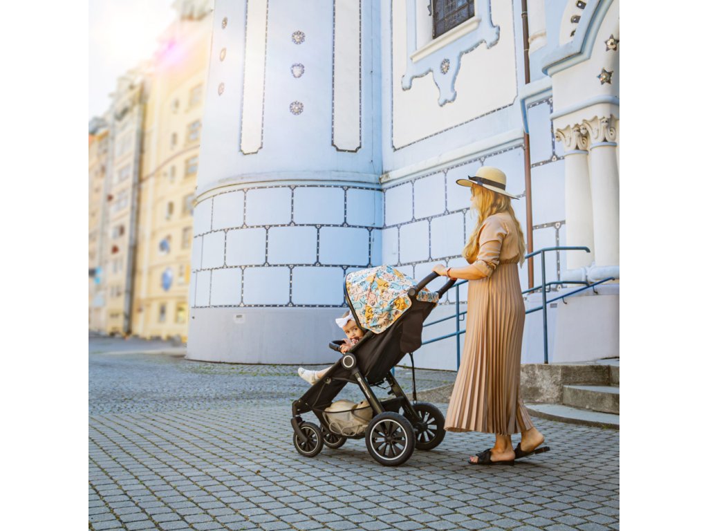 Set obsahuje kompletný športový kočík Street2 Air Black vrátane dizajnovej striešky Limited 100 ku kočíku a vložky Foamy v rovnakom dizajne ako má strieška.