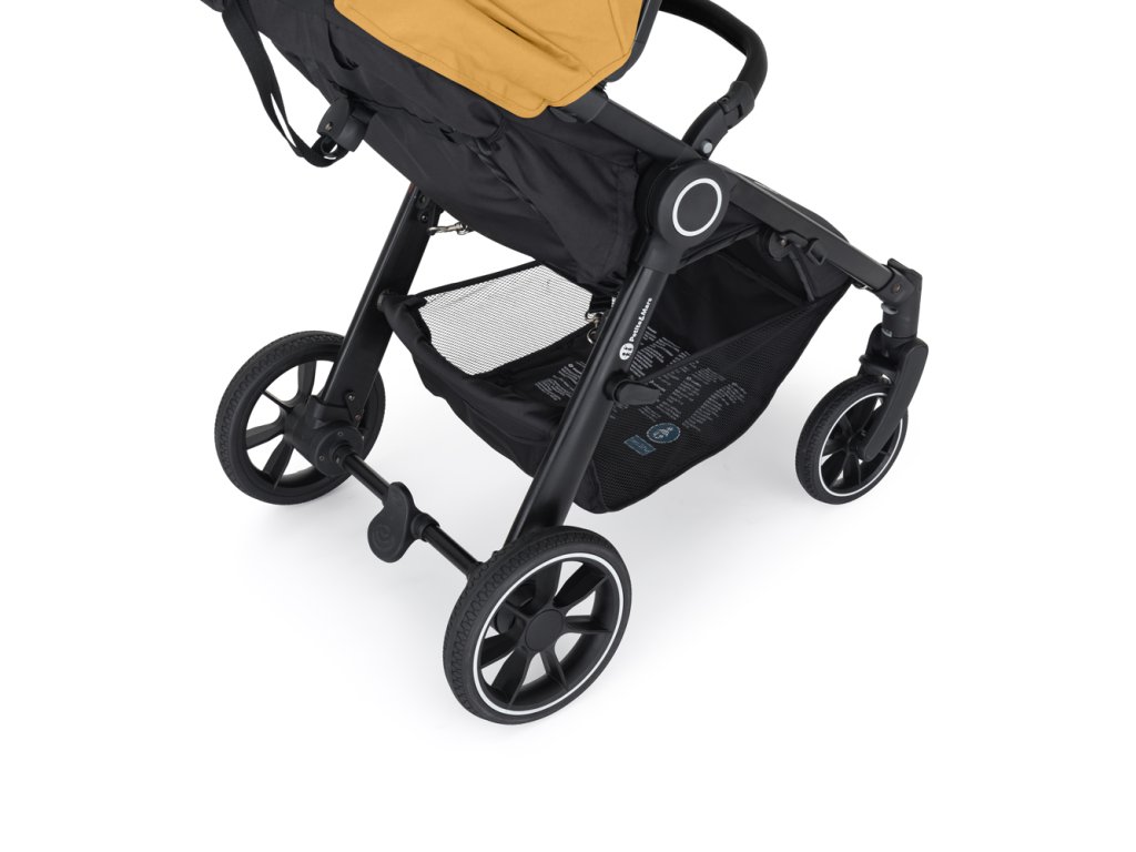 Športový kočík Street2 RWS Black je vďaka menším kolieskam ľahší, celogumené kolieska majú ale napriek tomu výborné jazdné vlastnosti. Madlo a rukoväť sú v krásnej hnedej farbe.