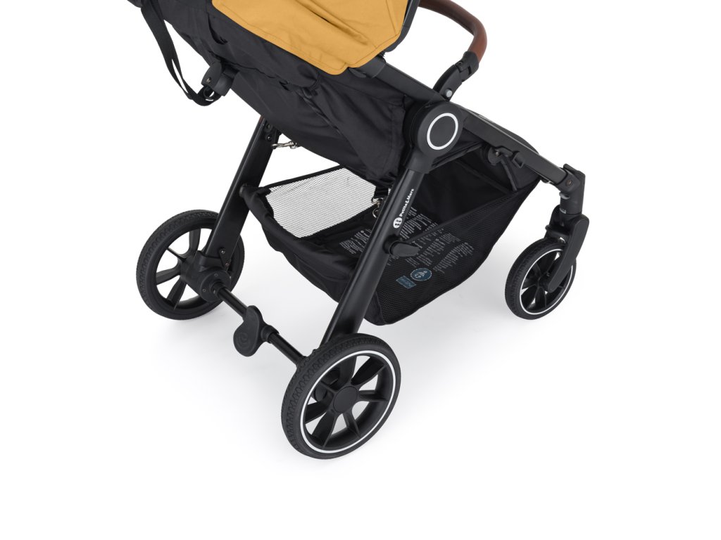 Športový kočík Street2 RWS Oak je vďaka menším kolieskam ľahší, celogumené kolieska majú ale napriek tomu výborné jazdné vlastnosti. Madlo a rukoväť sú v krásnej hnedej farbe.