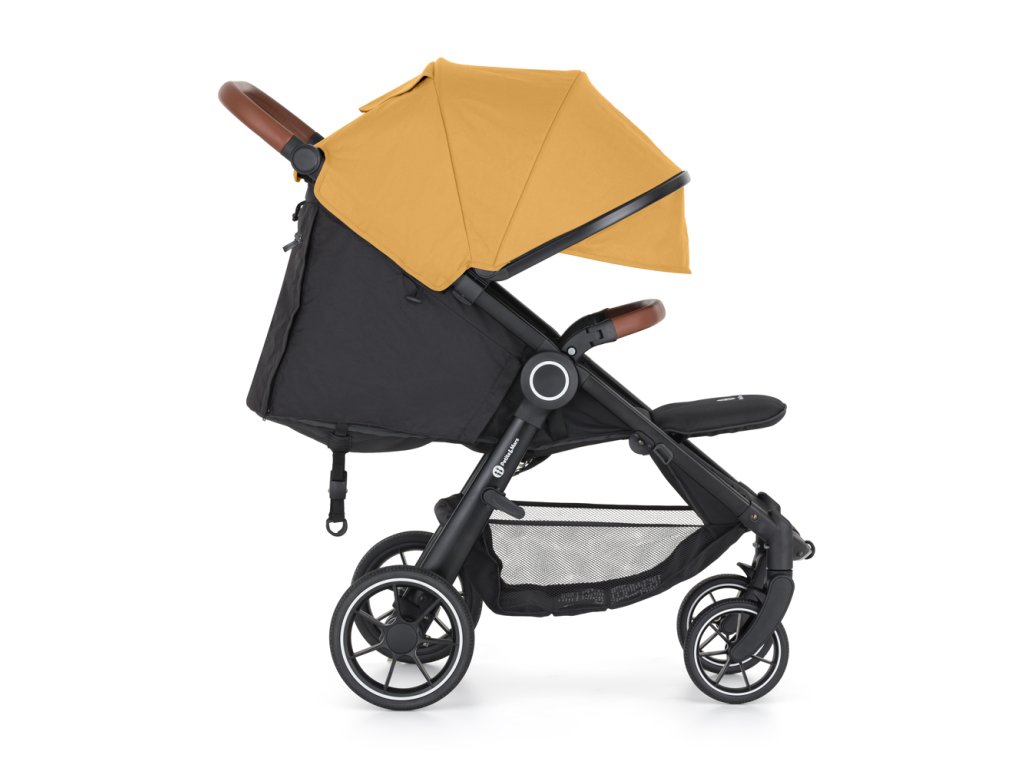 Športový kočík Street2 RWS Oak je vďaka menším kolieskam ľahší, celogumené kolieska majú ale napriek tomu výborné jazdné vlastnosti. Madlo a rukoväť sú v krásnej hnedej farbe.