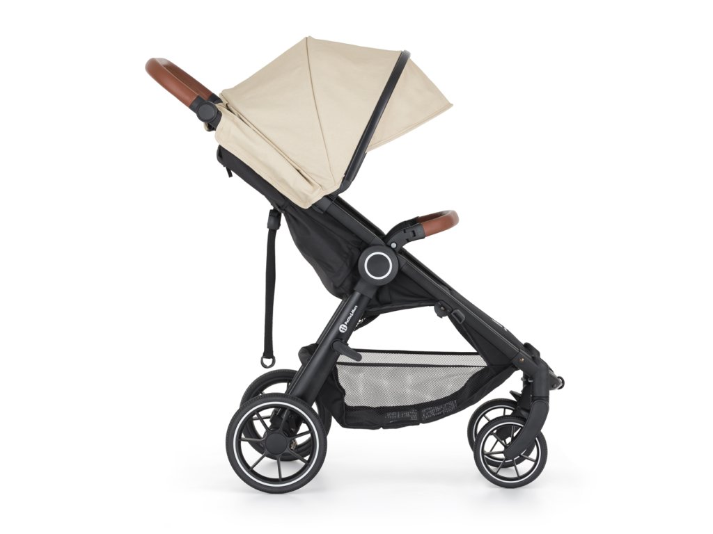 Športový kočík Street2 RWS Oak je vďaka menším kolieskam ľahší, celogumené kolieska majú ale napriek tomu výborné jazdné vlastnosti. Madlo a rukoväť sú v krásnej hnedej farbe.