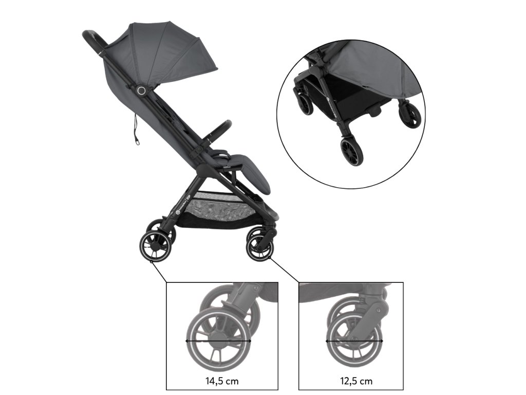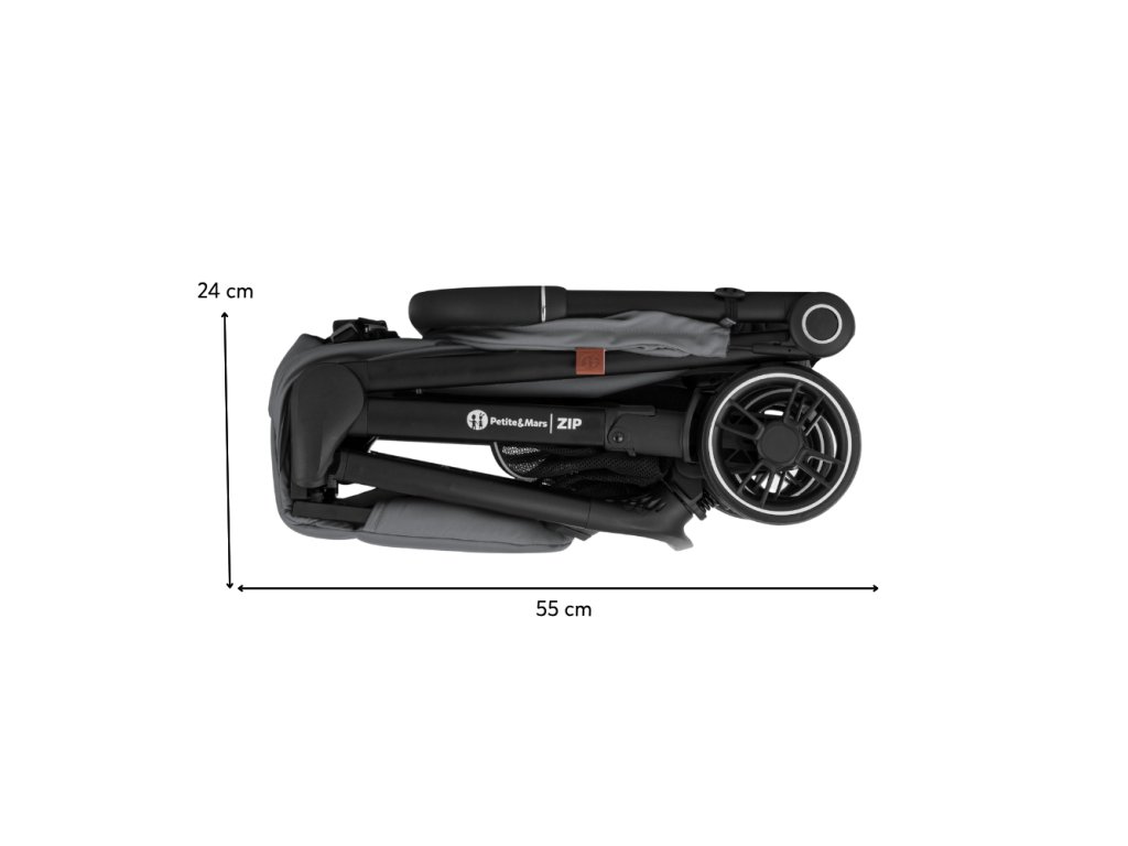 ZIP patrí medzi kočíky s kabínkovým rozmerom po zložení, takže ho môžete bez obáv vziať na palubu lietadla alebo uložiť do kufra aj menšieho auta. S hmotnosťou iba 7 kg ho bez problémov prenesiete v jednej ruke, pričom druhou môžete viesť dieťa.