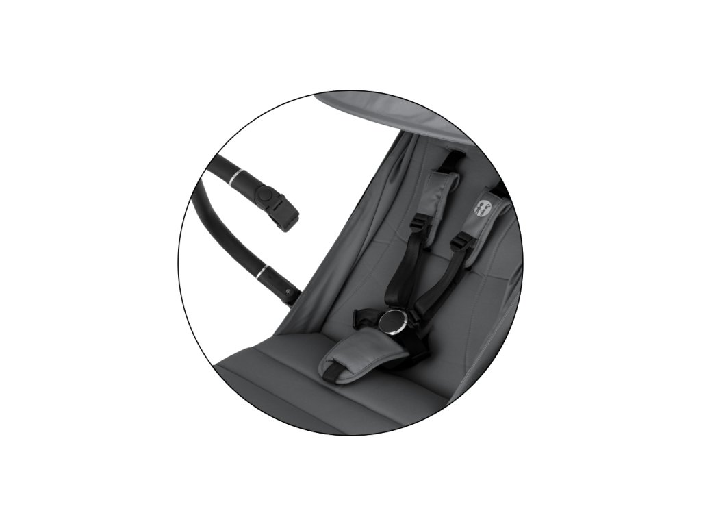 - Bezpečnosť zaručuje 5-bodový bezpečnostný pás s magnetickou prackou – rýchle, jednoduché a bezstarostné zapínanie.