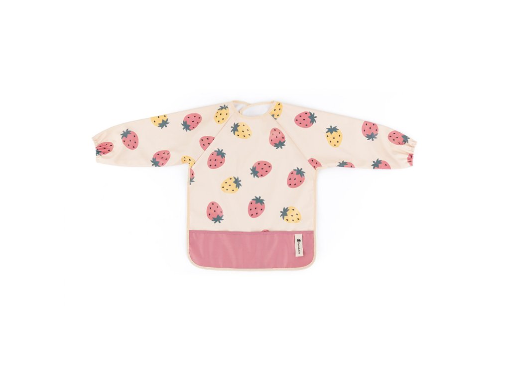 Pohodlný, nepremokavý podbradník s dlhým rukávom je vyrobený z rýchloschnúceho, bezpečného PU materiálu, úplne bez PVC a ftalátov. Predné vrecko na omrvinky zabezpečí poriadok a pohodlie pri kŕmení a dlhé rukávy s gumičkou chránia oblečenie pred zašpinením a namočením. Podbradník je veľmi jemný na dotyk a zapína sa na mäkký suchý zips. Možno ho používať nielen pri jedle, ale aj pri výtvarných prácach. Ak ho chcete udržať v čistote, po použití ho jednoducho utrite vlhkou handričkou.