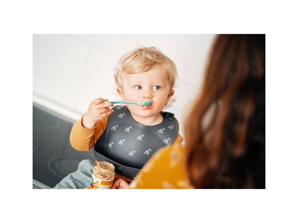 Veľmi ľahký, mäkký a praktický pri kŕmení bábätka a pri učení samostatného kŕmenia. Vhodný je od 6 mesiacov veku dieťaťa.