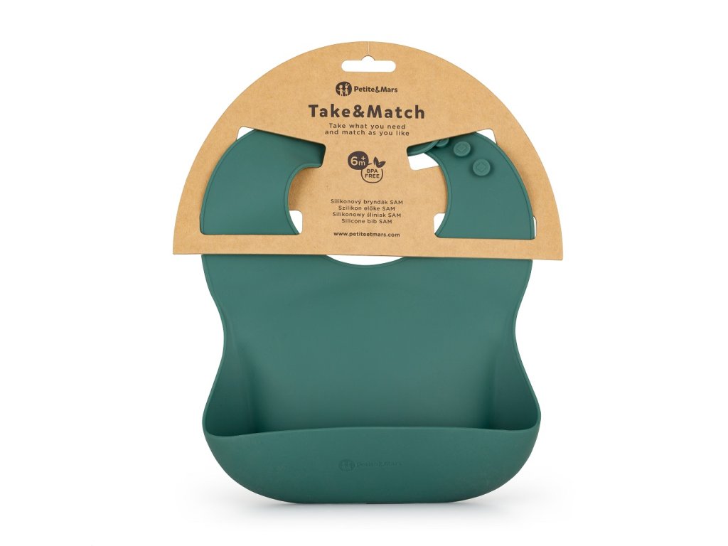 PETITE&MARS Podbradník silikónový Take&Match Misty Green 6m+