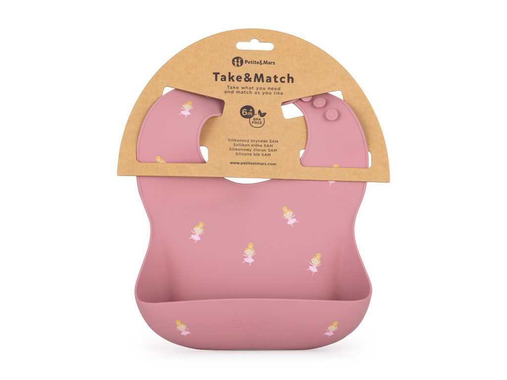 PETITE&MARS Podbradník silikónový Take&Match Rose Princesses 6m+
