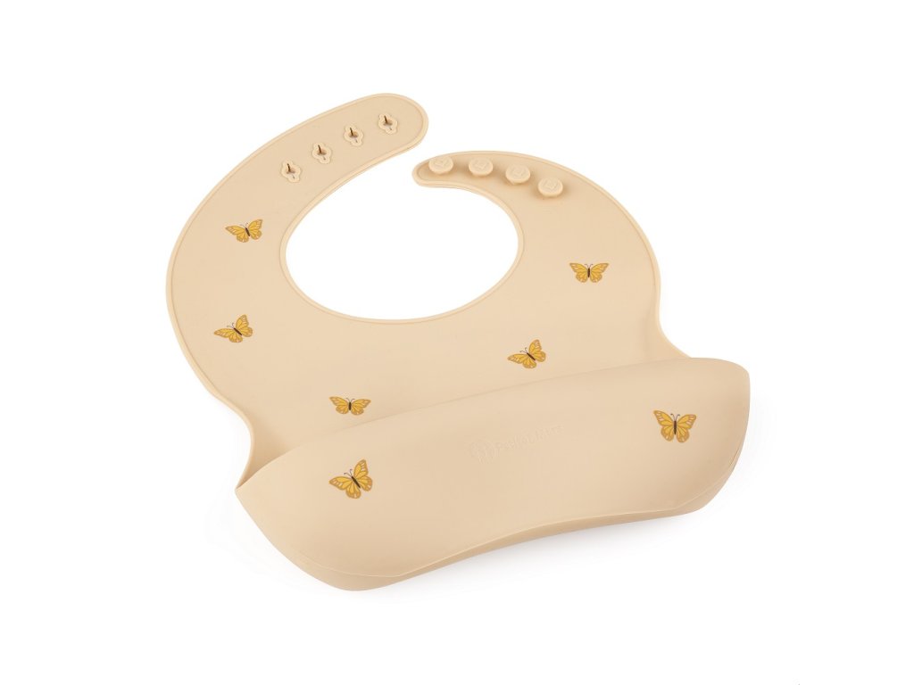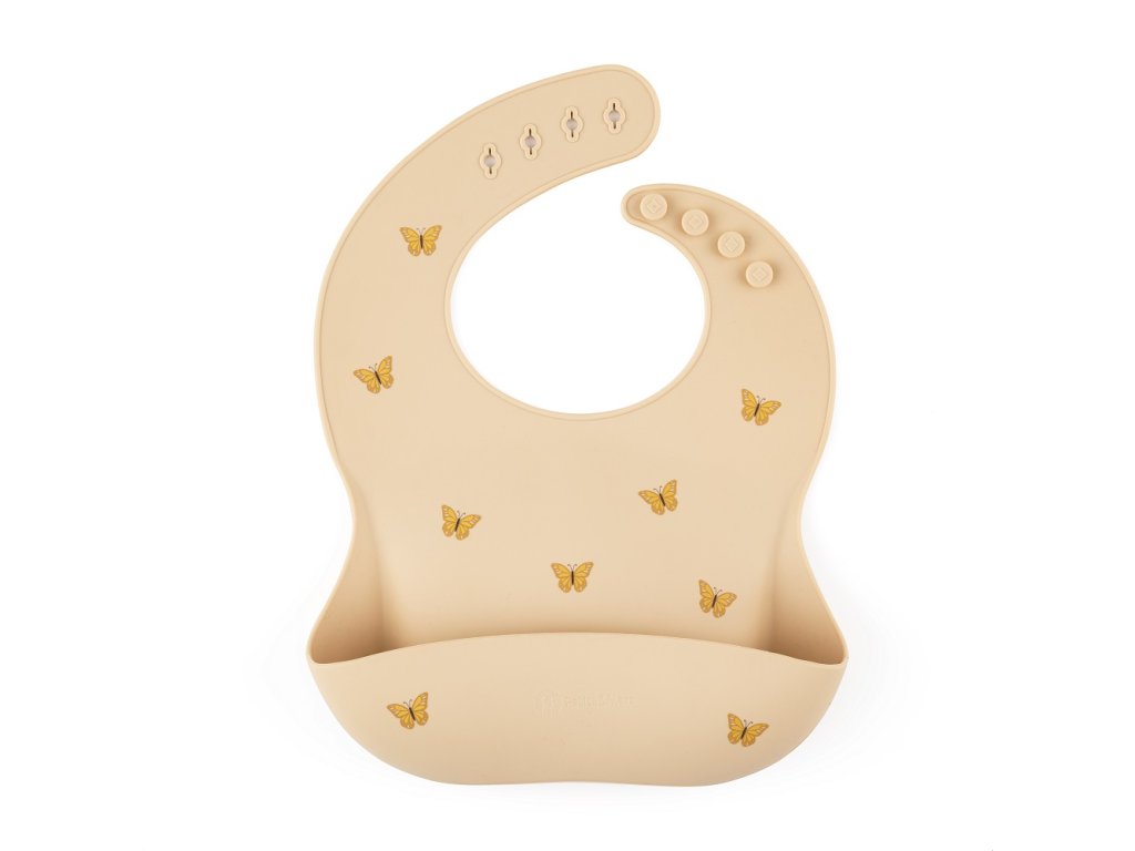 PETITE&MARS Podbradník silikónový Take&Match Sand Butterflies 6m+