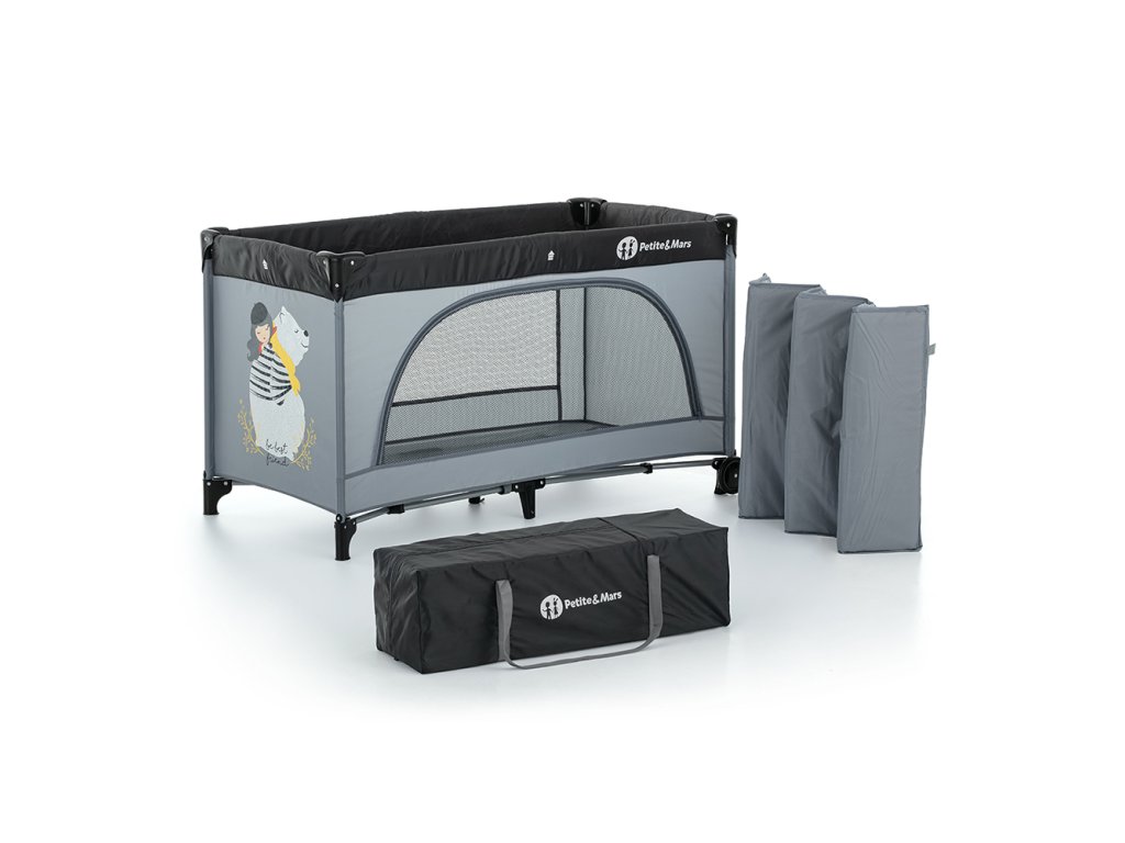 - Postieľka je dodávaná s praktickou cestovnou taškou, vďaka čomu je prenos aj skladovanie jednoduché a pohodlné.