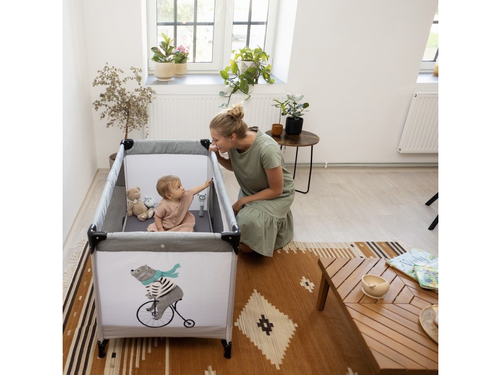 Ľahkú cestovnú postieľku s bočným otvorom na zips využijete nielen na cestách za zážitkami, ale aj počas návštevy starých rodičov či ako bezpečný priestor na domáci odpočinok pre dieťatko.