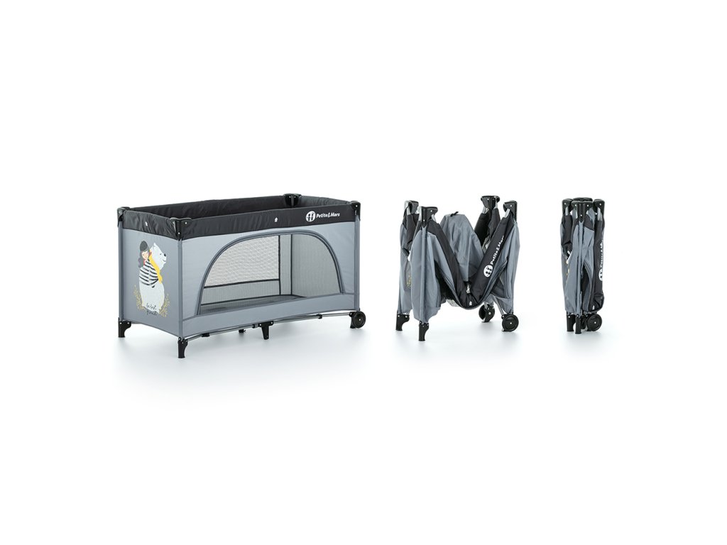 PETITE&MARS Postieľka cestovná Nyja Teddy Friend Coal