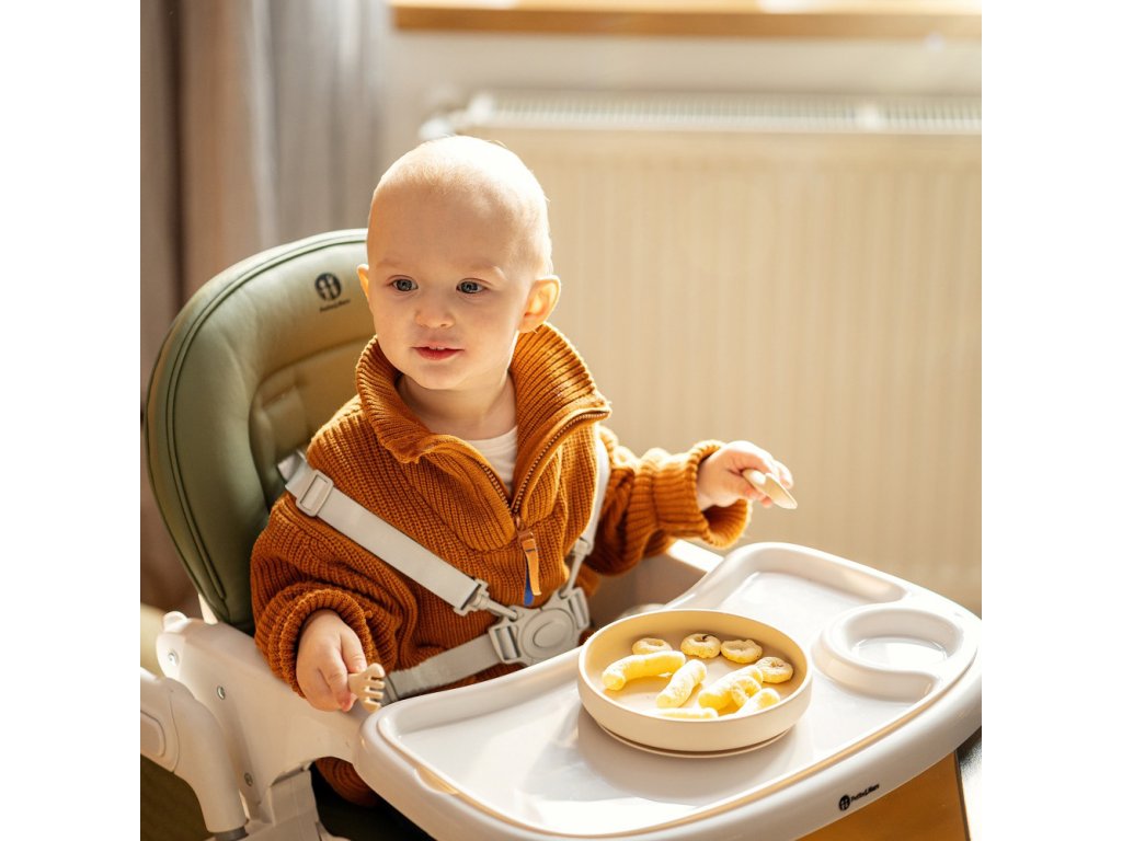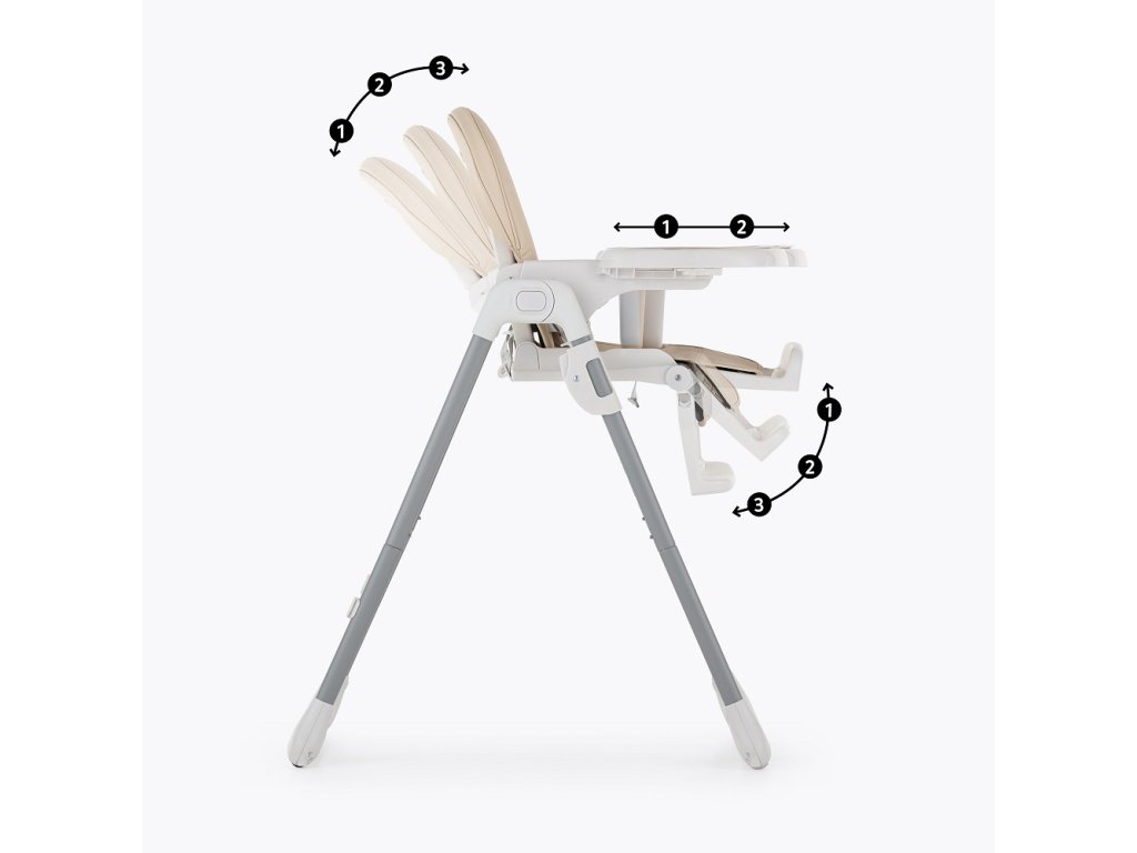 Starostlivosť o životné prostredie, ktorú sme pri tvorbe tejto stoličky zohľadnili, nezatienila najdôležitejšie aspekty výrobku - bol totiž navrhnutý tak, aby čo najbezpečnejšie zlepšil každodenný život dieťatka aj rodičov. Stolička má všetky funkcie, ktoré uľahčujú každodenné kŕmenie: je možné ju ľahko zložiť a vyčistiť, má 5-bodové bezpečnostné pásy, nastaviteľnú opierku chrbta, nastaviteľnú opierku nôh, nastaviteľnú výšku, dve polohy pre podnos s hornou časťou, ktorú možno umývať v umývačke riadu. Stabilná konštrukcia stoličky zaistí bezpečnosť vášho dieťaťa bez ohľadu na to, aké je aktívne alebo pohyblivé. Vysokokvalitné vyhotovenie, premyslená konštrukcia, moderný a originálny dizajn a kompaktné skladanie sú nadčasové vlastnosti, ktoré zabezpečia pohodlie pre vaše dieťa od okamihu, keď sa naučí sedieť.