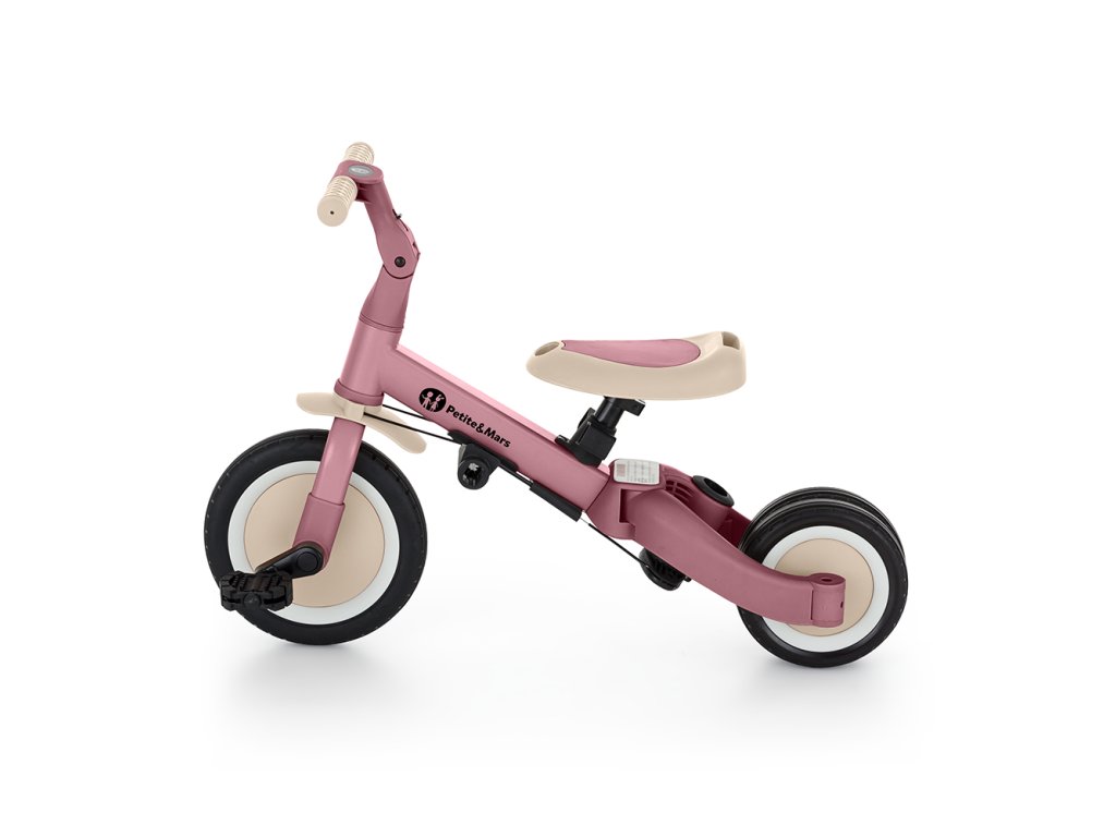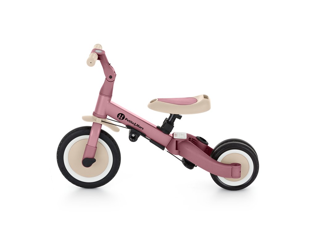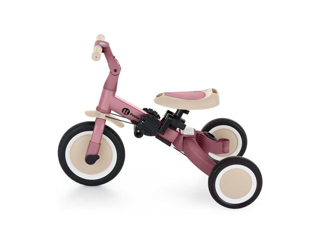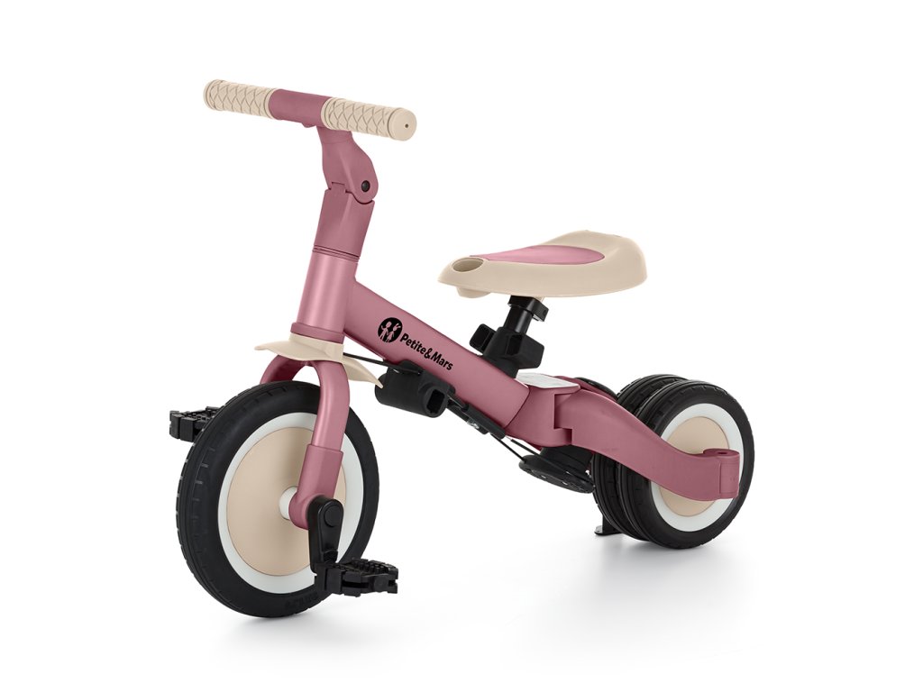 Multifunkčná trojkolka určená pre deti od 1,5 do 5 rokov alebo do 25 kilogramov. Je to nielen dopravný prostriedok na presun a učenie sa rovnováhy, ale aj spoločník pre rastúce dieťa počas mnohých vývojových fáz. Premyslené menenie sa bicykla sa prispôsobuje potrebám dieřatka podľa toho, ako sa vyvíjajú jeho motorické schopnosti. Spočiatku je to trojkolka s možnosťou asistencie rodiča, zatiaľ čo konečná verzia je štandardný bicykel s pedálmi, bez akýchkoľvek ďalších podporných prvkov. Vďaka takýmto zmenám môžete pomôcť svojmu dieťaťu naučiť sa jazdiť na dvoch kolesách.