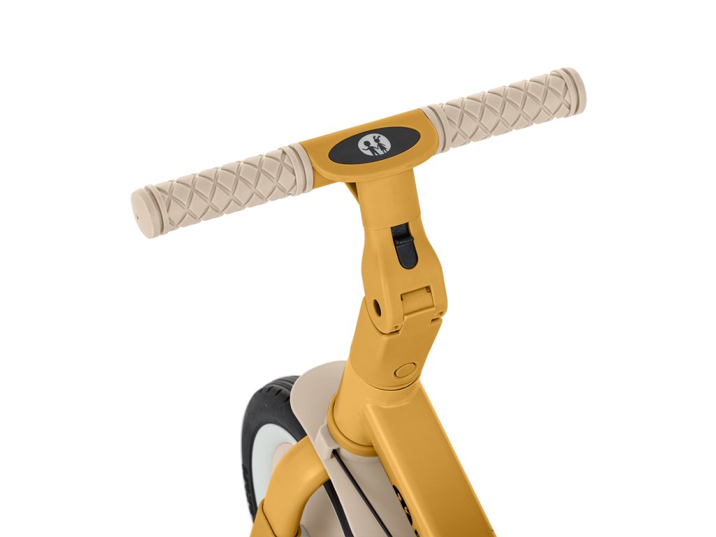 Riadidlá s protišmykovými gumovými rukoväťami sú nastaviteľné, pedále sú odnímateľné a sedlo sa prispôsobí výške, pričom vďaka nastaviteľným bezpečnostným pásom je zaistená maximálna bezpečnosť. Vďaka odolným gumovým kolesám je bicykel ideálny pre dvoj- aj trojkolesové verzie, ktoré zaručujú stabilitu na rôznych povrchoch.
