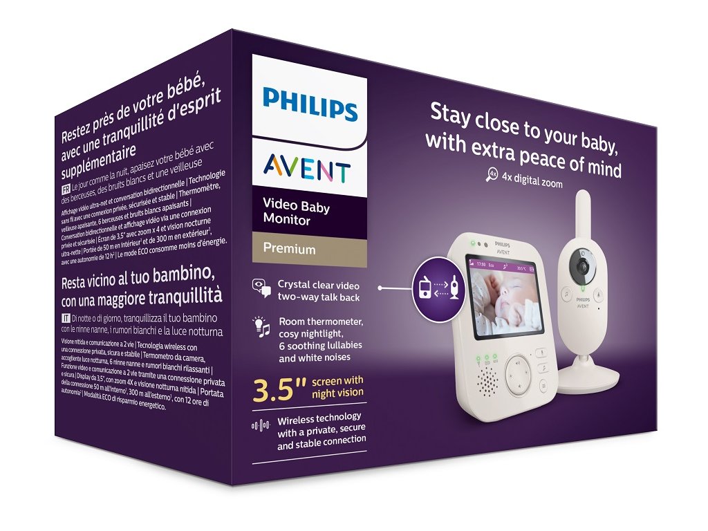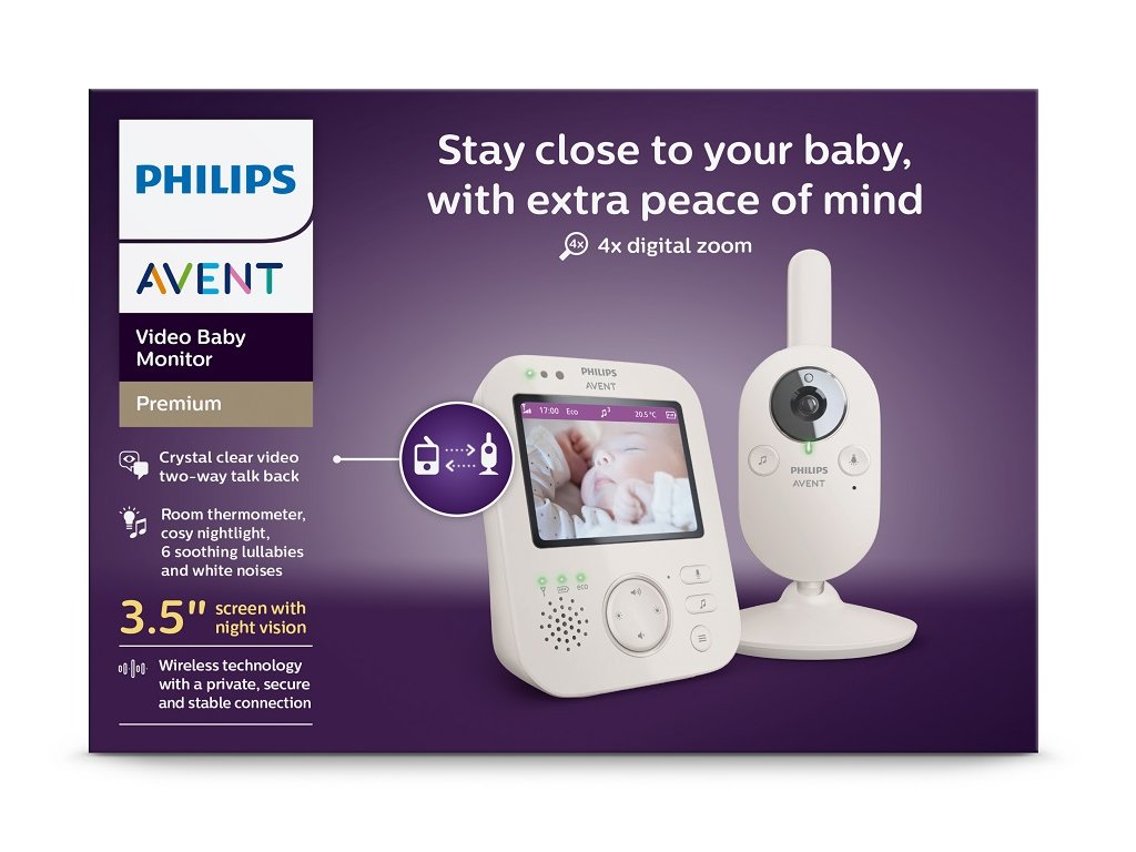 Detská pestúnka Philips Avent SCD891 vám umožní zostať v nepretržitom zabezpečenom a súkromnom spojení s vaším dieťatkom. Vďaka vynikajúcej kvalite zvuku a 3,5-palcovej (8,5 cm) obrazovke LCD s krištáľovo čistým obrazom budete