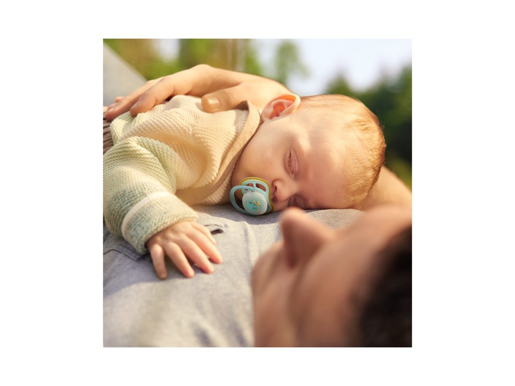 Umožnite pokožke vášho dieťatka dýchať Ľahko ho nájsť v tme Upokojujúci a priedušný s veľkými vzduchovými otvormi. Súhlasí 9 z 10 rodičov: Cumlíky Philips Avent ultra air sú vhodné moje malé bábätko.** Verzia, ktorá žiari v tme, znamená, že pohodlie a úľavu vždy ľahko nájdete. Teraz obsahuje až 80 % materiálov rastlinného pôvodu.* Navrhnuté pre komfort • Mimoriadne veľké vzduchové otvory umožňujú pokožke dieťaťa dýchať • Ortodontický cumlík navrhnutý pre prirodzený vývoj ústnej dutiny • Obľúbené bábätkami s 98 % prijatím cumlíkov*** Praktické, bezpečné a teraz ešte ekologickejšie • Šetrnejšie k planéte, keďže obsahuje 80 % materiálov rastlinného pôvodu* • Puzdro na sterilizáciu a prenášanie na rýchlu a jednoduchú hygienu Váš nočný pomocník • Podporuje spánkový režim pre zdravý vývoj • Svieti v tme dlho po zhasnutí svetiel Mimoriadne veľ ké vzduchové otvory Otvory v náustnom štíte vetrajú pokožku vášho dieťaťa, čím ju udržiavajú suchšiu a zaisťujú maximálne upokojujúce pohodlie. Ortodontický silikónový cumlík Naše ortodontické cumlíky sú navrhnuté s použitím mäkkého silikónu, ktorý podporuje prirodzené pohyby svalov v ústach a pomáha znižovať riziko vzniku chybného chrupu. Úzky kŕčok cumlíka je navrhnutý tak, aby znižoval tlak medzi jazykom a podnebím. Cumlíky Philips Avent ultra sú nezávisle akreditované nadáciou Oral Health Foundation. Sú vyrobené zo 100 % potravinárskeho silikónu, sú odolnejšie a trvácnejšie ako gumené (latexové) cumlíky a neobsahujú BPA, BPS, ftaláty, PVC a polycyklické aromatické uhľovodíky. 98 % prijatie cumlíkov Naše textúrované silikónové cumlíky sú navrhnuté tak, aby napodobňovali pocit maminho prsníka. Keď sme sa rodičov pýtali, ako na ne reagujú ich malé deti, v priemere 98 % z nich uviedlo, že ich deti prijali cumlíky Philips Avent ultra. Podporuje spánkový režim 8 z 10 rodičov tvrdí, že cumlíky Philips Avent ultra pomáhajú ich dieťaťu zaspať.** V tme žiari Kryt cumlíka v tme jemne svieti. Takže je ľahšie nájsť cumlík vášho dieťaťa, keď zhasnú svetlá 80 % materiálov rastlinného pôvodu* Udržateľnejšie voľby vám umožnia poskytnúť tú najlepšiu starostlivosť s menším dopadom na planétu. Kompletný sortiment Philips Avent ultra obsahuje cumlíky a puzdrá na sterilizáciu vyrobené z 80 % z rastlinných materiálov.* Puzdro na sterilizáciu a prenášanie Puzdro na prenášanie slúži ako sterilizátor, takže cumlíky sú vždy pripravené, keď ich potrebujete. Stačí pridať vodu a 3 minúty ohrievať v mikrovlnnej rúre na jednoduchú sterilizáciu, pri ktorej vzniká až o 50 % menej emisií CO2.*** * Tvrdé plastové časti okrem silikónového cumlíka (prístup založený na hmotnostnej rovnováhe). * *Spotrebiteľský test v USA z roku 2023 potvrdil 98 % akceptáciu textúrovaného cumlíka Philips Avent použitého v cumlíkoch ultra (n = 201). * **V porovnaní s tradičnými metódami sterilizácie (varenie) cumlíkov. * ***Z hygienických dôvodov vymieňajte cumlíky za nové po 4 týždňoch používania. Výstraha: Puzdro, voda a cumlíky môžu byť aj po 5 minútach chladenia stále horúce. Pri nesprávnej výške hladiny vody, nesprávnom výkone mikrovlnnej rúry či nesprávnej dĺžke jej použitia nemusí sterilizácia prebehnúť správnym spôsobom a môže dôjsť k poškodeniu puzdra alebo cumlíkov. Toto puzdro používajte iba s priloženými cumlíkmi. Puzdro odkladajte mimo dosahu detí. Pre bezpečnosť vášho dieťaťa! UPOZORNENIE! Pred každým použitím dôkladne skontrolujte. Potiahnite cumlík všetkými smermi. Pri prvom náznaku poškodenia či opotrebovania ho odhoďte. Používajte iba výhradne určené držiaky cumlíkov testované podľa normy EN 12586. K cumlíku nikdy nepriväzujte iné stužky ani šnúrky, mohlo by dôjsť k uškrteniu dieťaťa! Vždy sa uistite, že vaše dieťa používa cumlík správnej veľkosti. Tento výrobok sa musí vždy používať pod dozorom dospelej osoby. Pred prvým použitím: Cumlík vložte na 5 minút do vriacej vody. Nechajte ho vychladnúť a potom z neho vytlačte všetku vodu. Zabezpečíte tak dostatočnú hygienu. Pred každým použitím: Čistite teplou vodou a jemným mydlom. NEPOUŽÍVAJTE abrazívne čistiace prostriedky. Cumlíky sú vhodné pre všetky bežne používané spôsoby sterilizácie. Skôr než sa dotknete sterilizovaných cumlíkov, dôkladne očistite povrchy aj svoje ruky. Ak chcete pripevniť držiak na cumlík, použite iba otvor v ušku cumlíka (odporúča sa použiť držiak na cumlík s tenkou šnúrkou). Z bezpečnostných a hygienických dôvodov po 4 týždňoch používania cumlík vymeňte. Ak cumlík uviazne v ústach, NEPANIKÁRTE. Nedá sa prehltnúť a je navrhnutý tak, aby ste si s takouto udalosťou poradili. Čo najopatrnejšie ho vyberte z úst dieťaťa. Vrchnú časť cumlíka nikdy nenamáčajte do sladkých látok ani do liekov, pretože by sa mohol poškodiť chrup dieťaťa. Cumlík nenechávajte na priamom slnečnom svetle ani v blízkosti zdroja tepla, prípadne v sterilizačnom roztoku dlhšie, než sa odporúča, pretože by mohlo dôjsť k narušeniu jeho povrchu. Adresa výrobcu: Philips Consumer Lifestyle B.V., Tussendiepen 4, 9206 AD Drachten, The Netherlands, PH.CentralRegulatoryOfficer@philips.com
