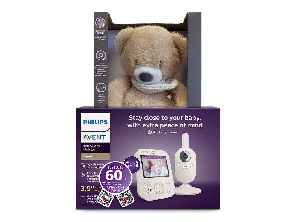 Philips AVENT Pestúnka detská video SCD891/26+NATTOU Uspávačik 4v1 Sleepy Bear Pale Brown 0m+