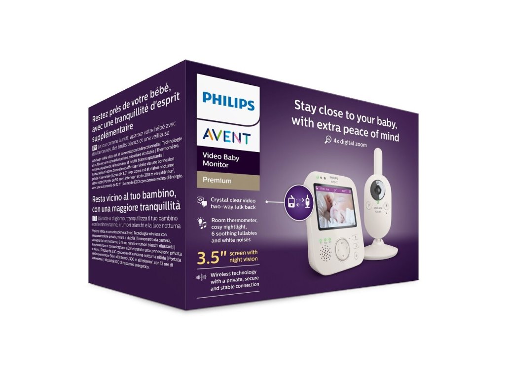 „Detská pestúnka Philips Avent SCD891 vám umožní zostať v nepretržitom zabezpečenom a súkromnom spojení s vaším dieťatkom. Vďaka vynikajúcej kvalite zvuku a 3,5-palcovej (8,5 cm) obrazovke LCD s krištáľovo čistým obrazom budete svoje dieťatko dokonale vidieť aj počuť vo dne alebo v noci.“