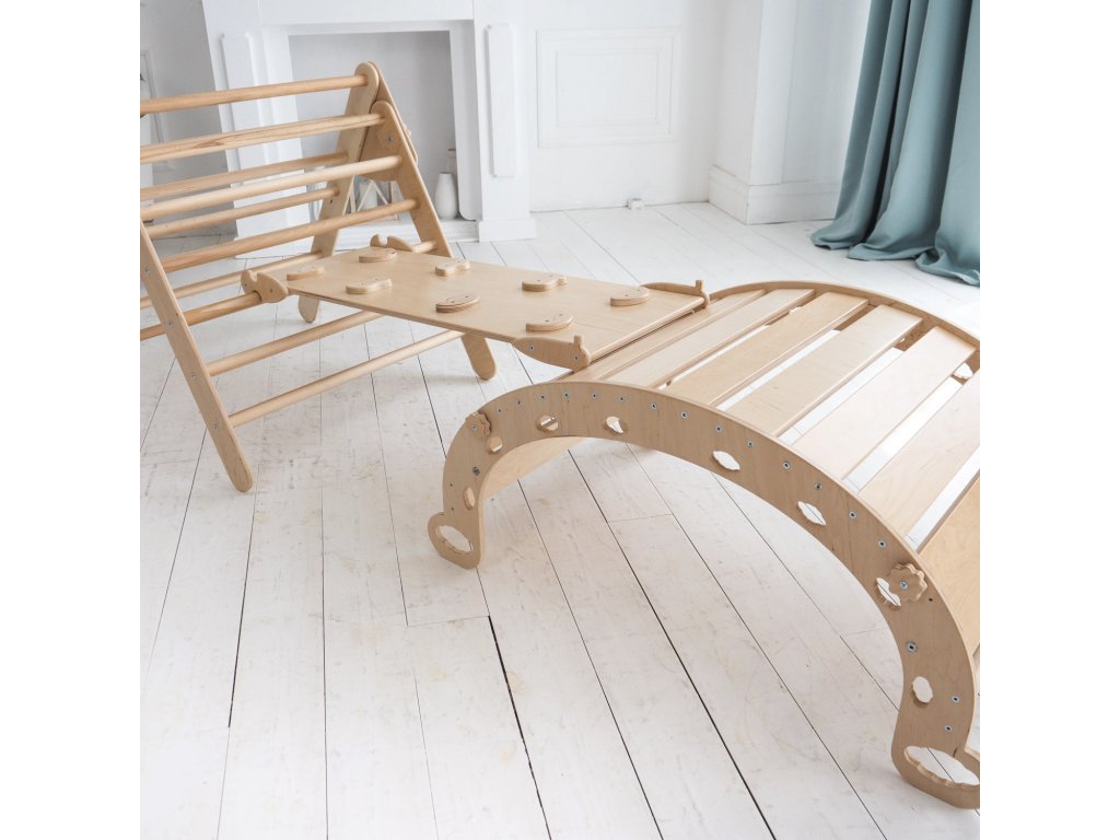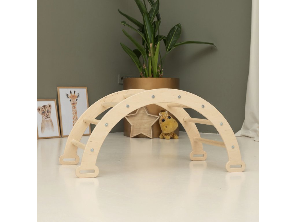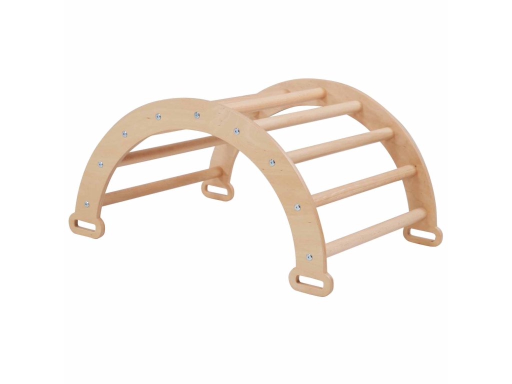 detské ihrisko s týmto dreveným lezeckým oblúkom, ktorý je vyrobený z