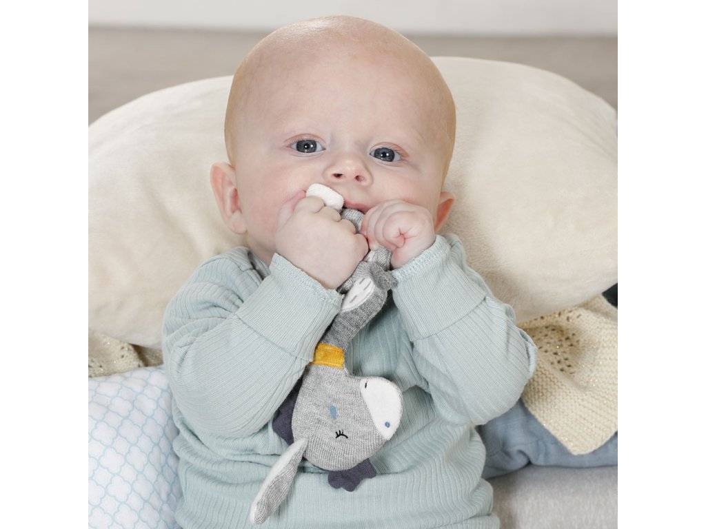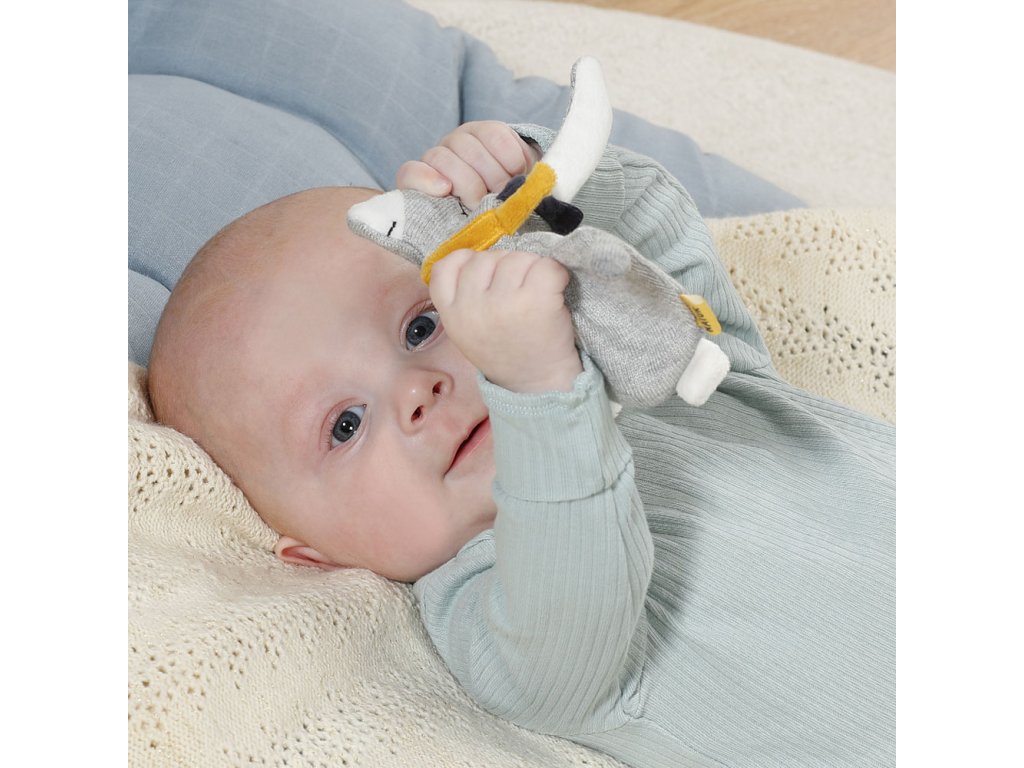 spoločníkom bábätka. Hračka s hrkálkou podporuje hmat a sluch dieťaťa, rovnako