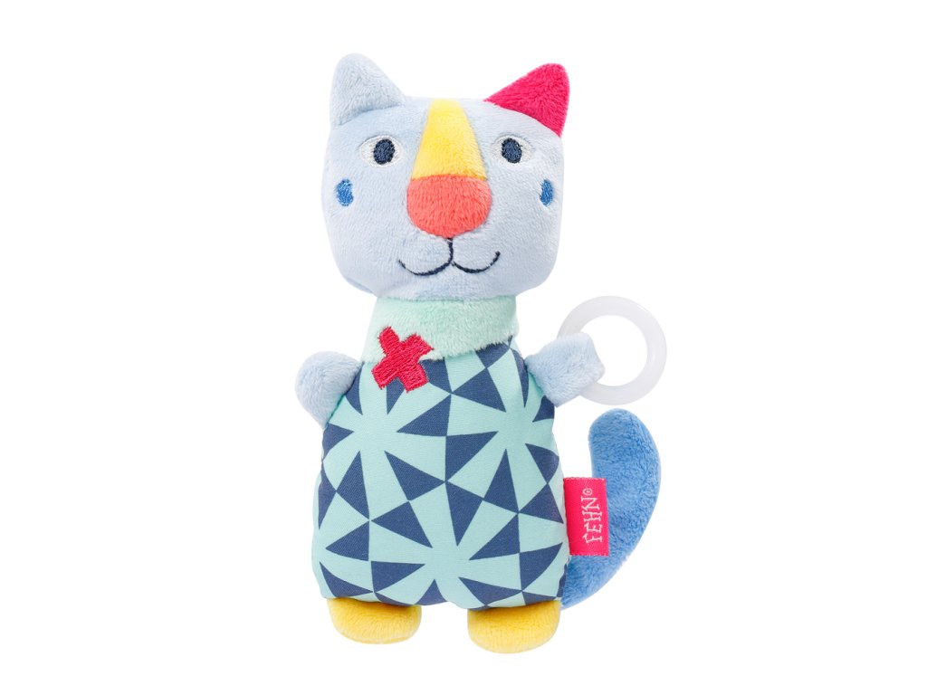 Plyšová hračka je teda nielen krásna svojimi výraznými farbami a vzormi, ale aj super praktická. Skryté hrkálky v plyšové mačičke podporujú sluch, uchopenie a dotyk dieťaťa a jemnú motoriku. Farebná uchopovacia mačička je ideálna ako darček k narodeniu, krstu alebo narodeninám.