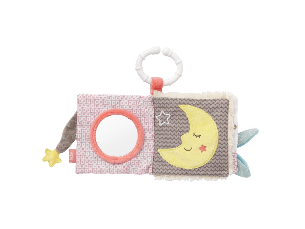 Interaktívná plyšová knižka, z príjemného materiálu s veselým dizajnom vyzýva deti k zapojeniu a prieskumu nových hmatových aj sluchových vnemov. Hmat, sluch aj zrak vašich detí bude s touto hračkou stimulovaný a deti sa rýchlo samy zabavia. Vďaka pastovému krúžku v tvare C, knižku ľahko kamkoľvek pripojíte.