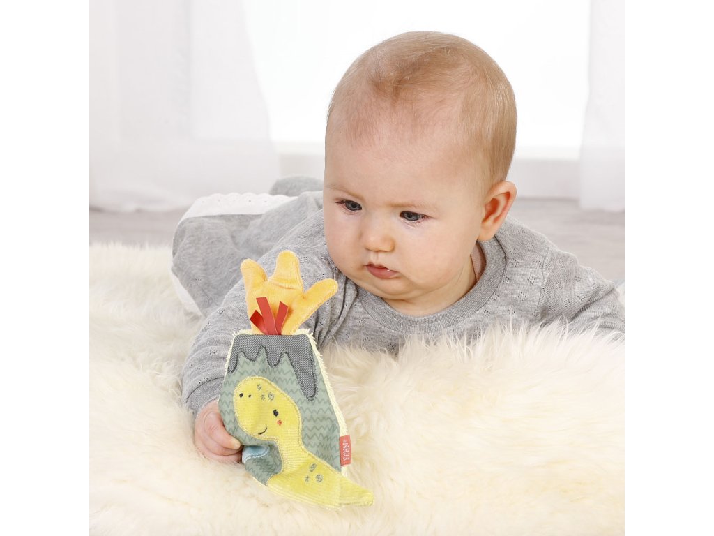 Plyšová sopka je vyrobená z kvalitného mäkkého plyšu a je jednoduchá na uchopenie aj malými detskými ručičkami. Vnútri sopky sa nachádza šuštiaci papier a pri stláčaní tak vydáva praskajúci zvuk. Hračka rozvíja detskú fantáziu, úchop, zmysly a jemnú motoriku . Malá veľkosť umožňuje vziať plyšovú hračku kamkoľvek so sebou – ľahko sa zmiestni do postieľky, kočíka aj autosedačky.