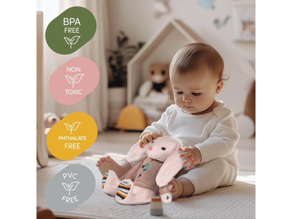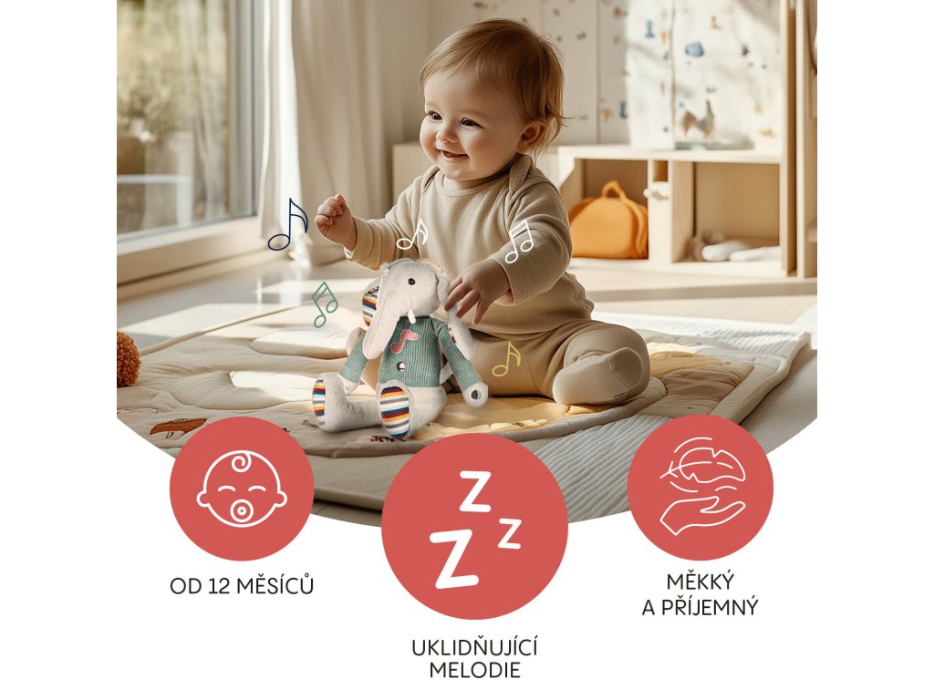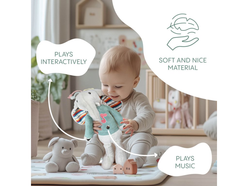 Vďaka mäkkému plyšovému materiálu je hračka ideálna nielen na hranie, ale aj na maznanie a zaspávanie. Bezpečné prevedenie zaručuje, že je vhodná pre deti od 12 mesiacov a poskytuje im hodiny zábavy a objavovania nových zvukov.