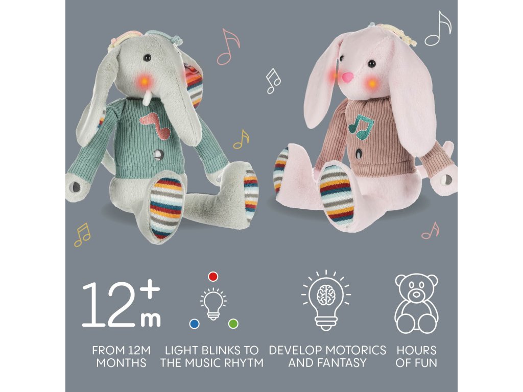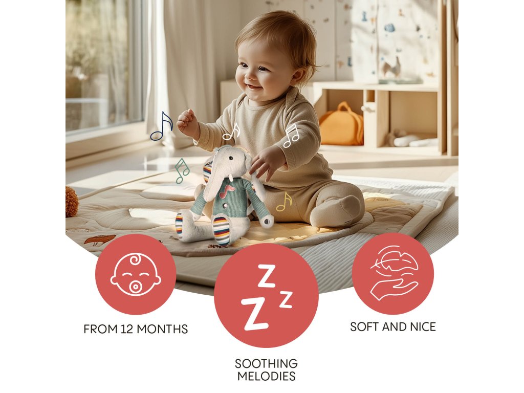 Vďaka mäkkému plyšovému materiálu je hračka ideálna nielen na hranie, ale aj na maznanie a zaspávanie. Bezpečné prevedenie zaručuje, že je vhodná pre deti od 12 mesiacov a poskytuje im hodiny zábavy a objavovania nových zvukov.