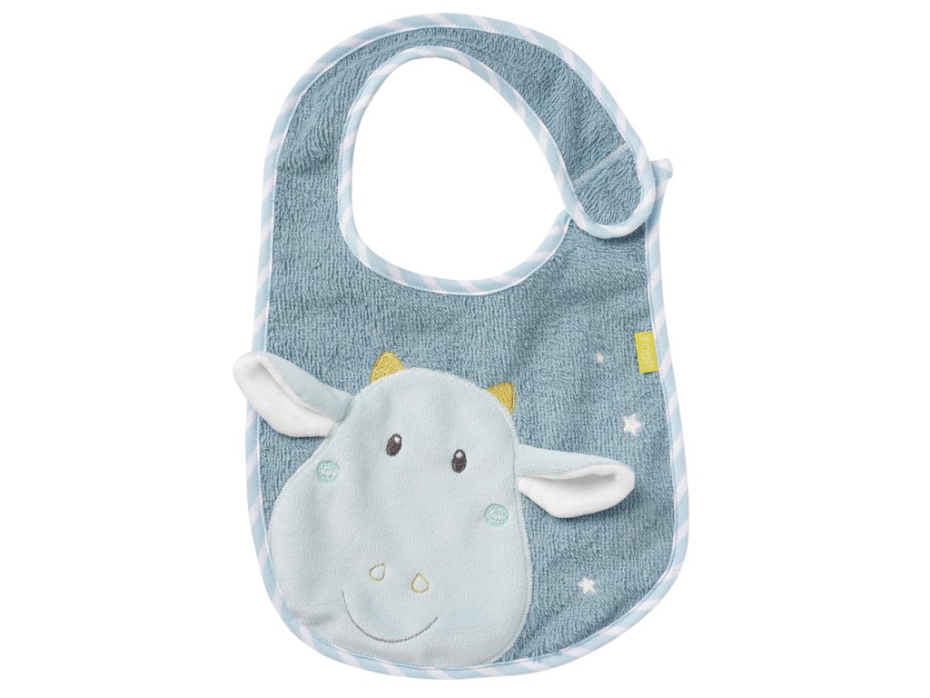 Mäkký froté podbradník vyvolá úsmev na vašej tvári. Aplikácia v podobe ušatého dráčika pôsobí veselo. Podbradník je vysoko absorpčný, šetrný k pokožke a je spoľahlivou ochranou proti zašpineniu pri jedle. Podbradník sa upevňuje na suchý zips a dá sa prať.