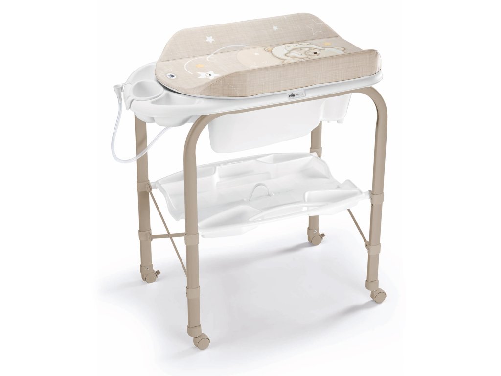 Stôl má mäkkú prebaľovaciu podložkou s výšivkou medvedíka a je vybavený