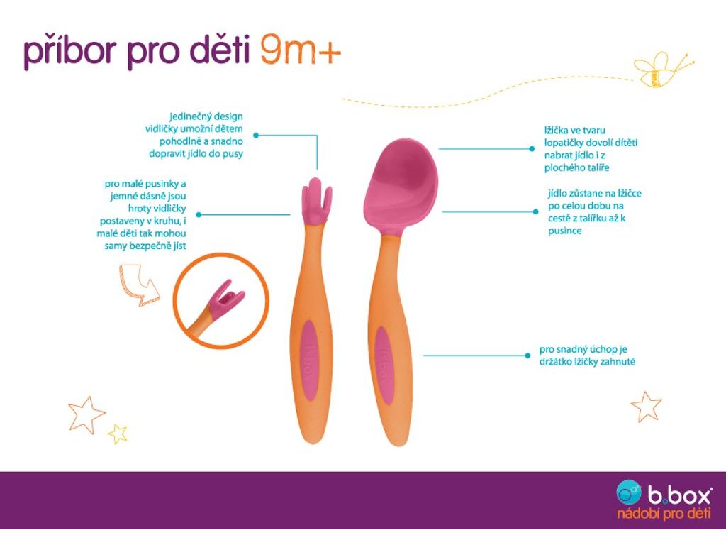 Patentovaný příbor australské značky b.box je navržený ve spolupráci s ergoterapeuty tak, aby co nejvíce podpořil samostatnost dětí, když jsou připraveny krmit se samy! Příbor skvěle padne do ručičky a pusinky vašeho batolete.
