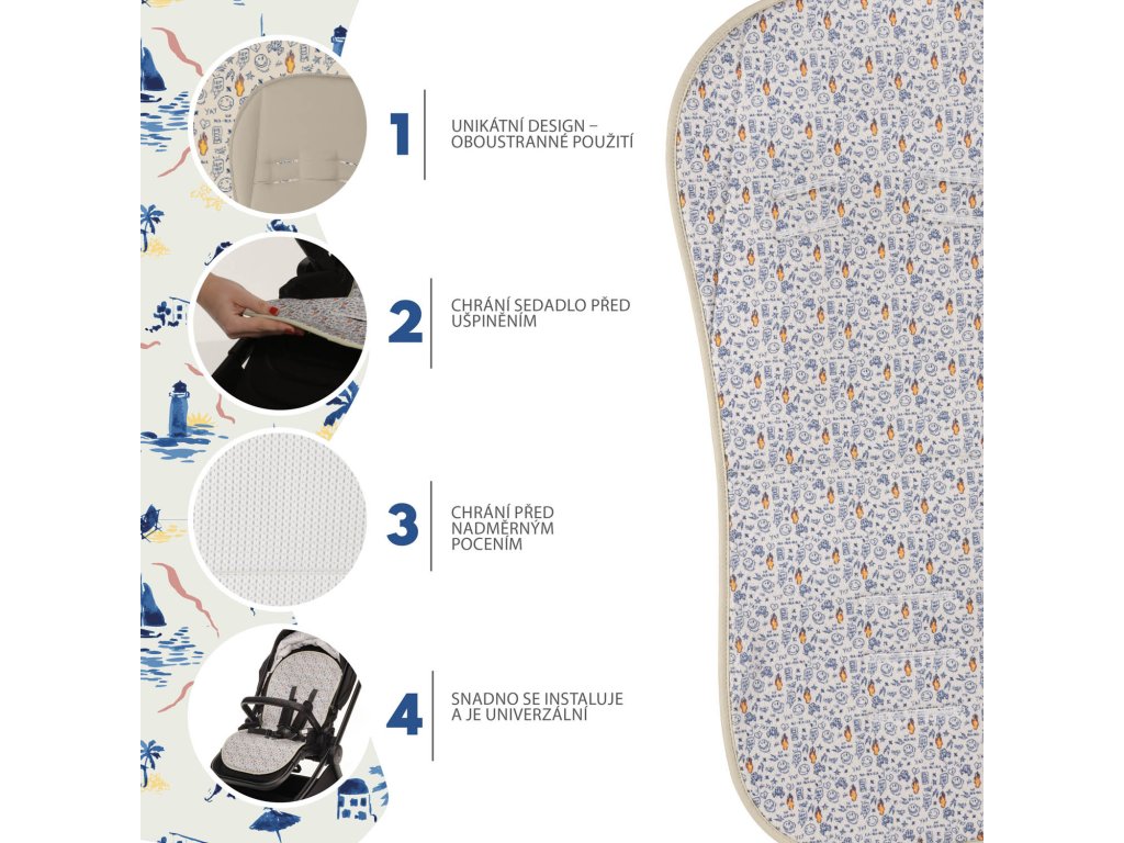 kočíkov a chráni sedadlo kočíka pred nečistotami. Vložka do kočíka je odolná a
