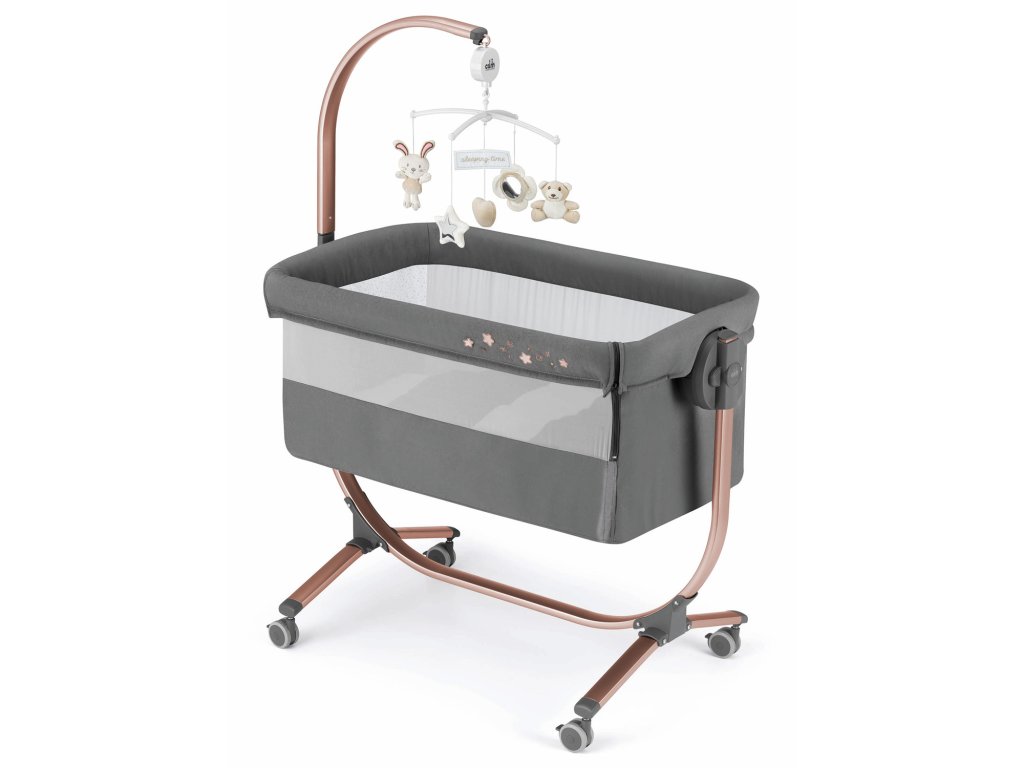 rôznych výšok i polohovať. Je ukotvená v kovovom ráme, postieľku lze zaistiť